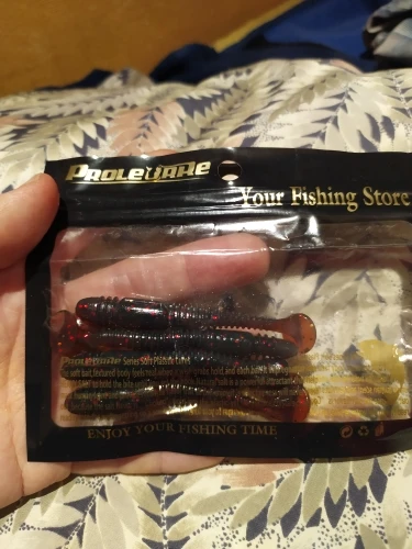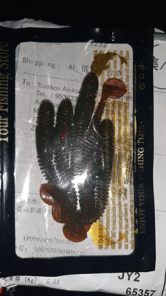 Доставка после объединения посылок- dpd за месяц до Калининграда, отслеживалась. Резина неплохая с запахом креветки на окуня супер.