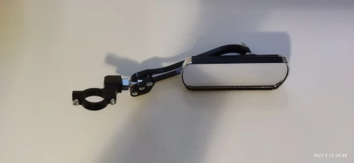 зеркало смотрится красиво, но с функциональностью слабовато. крепление возможно только на металлическую часть руля, а оттуда видно только собственные локти. хорошо работало бы, если ставить на край ручки руля или удлинить вынос. но конструкция позволяет нарастить, буду дорабатывать. в вопросах пишут, что зеркало левое и на правую сторону не перекручивается. подсказываю: откручивать нужно само зеркало от направляющей и ставить с обратной стороны, тогда станет правое.