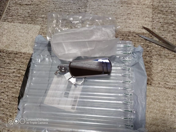 Пришло зеркало целое, хорошо запакованное, за исключением маленького заводского брака под окантовкой но оно слегка заметно, на скорость не влияет! Зеркало тяжеленькое не металл конечно сплав силумина но всё же не пластик. В целом доволен!