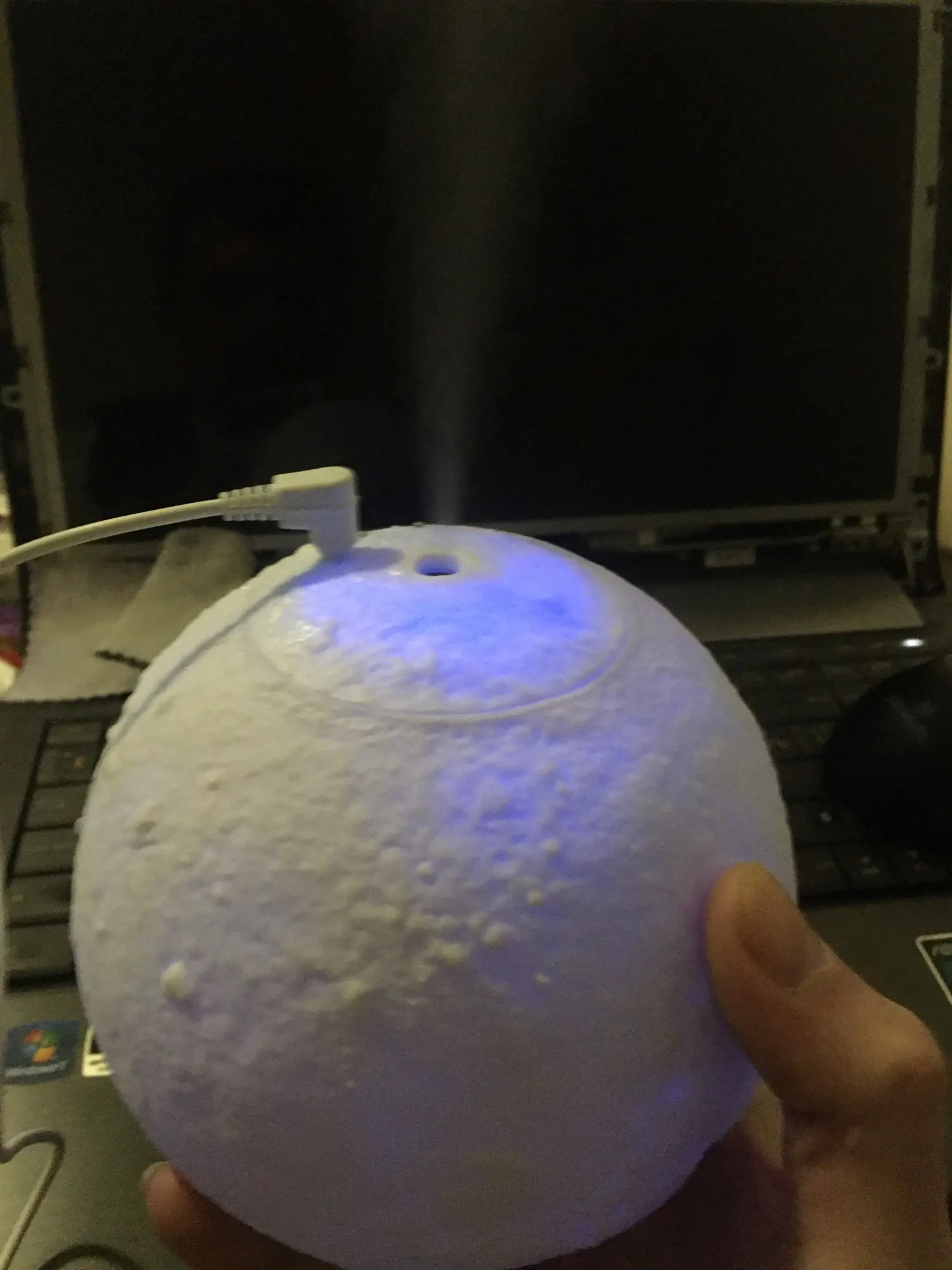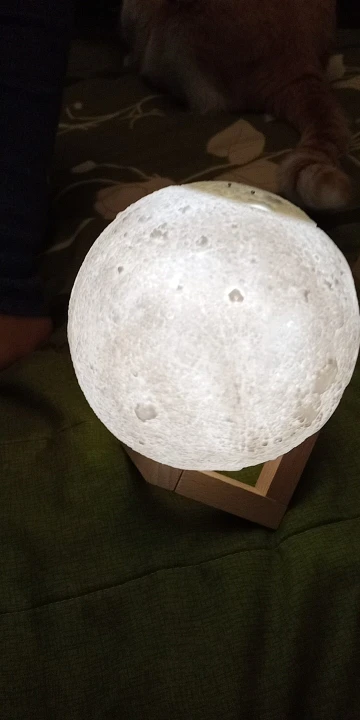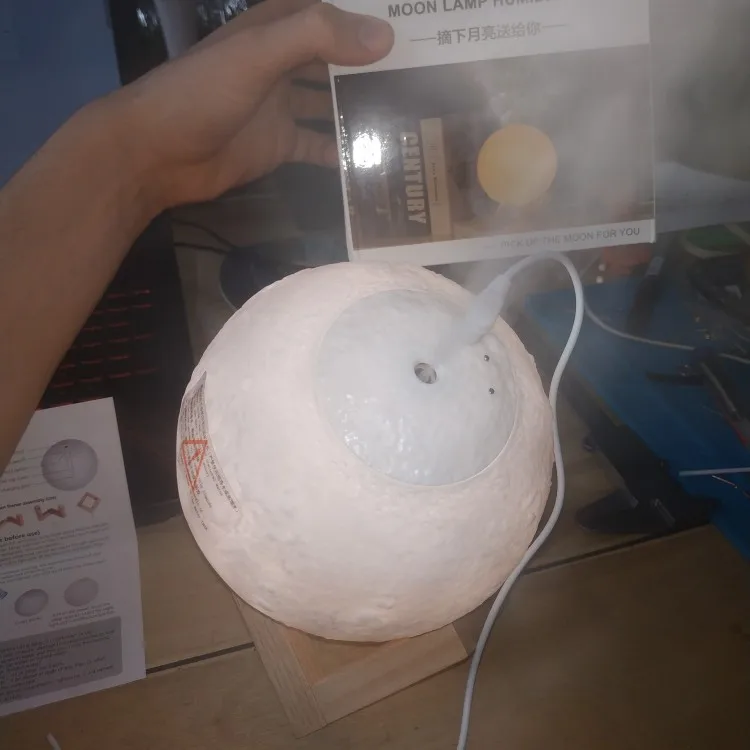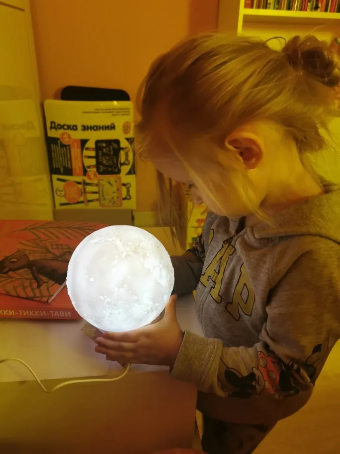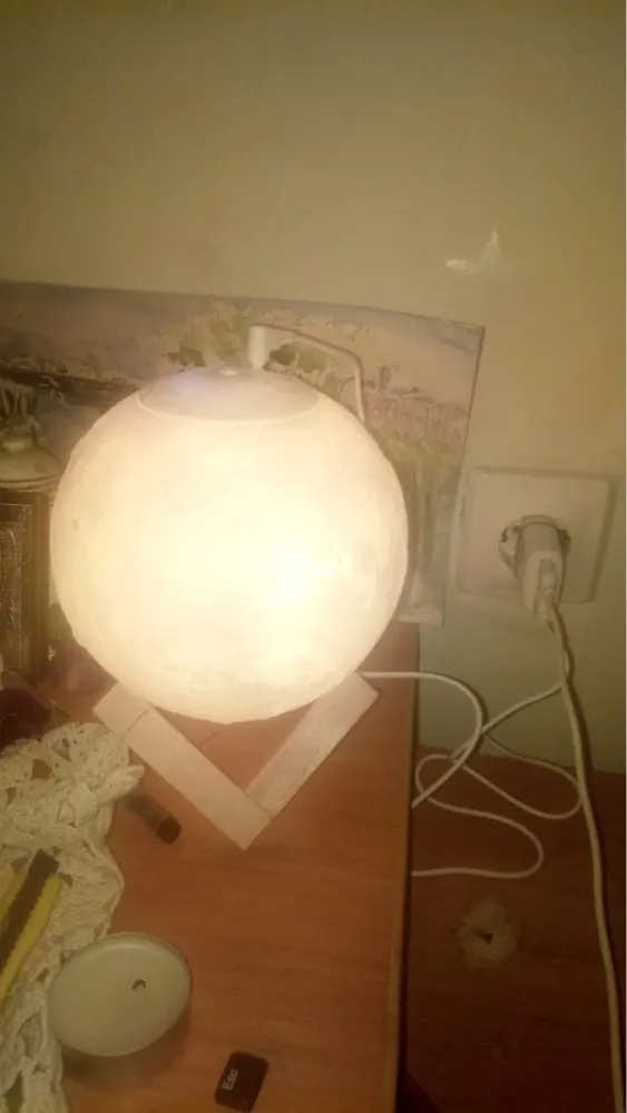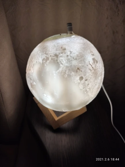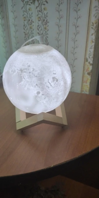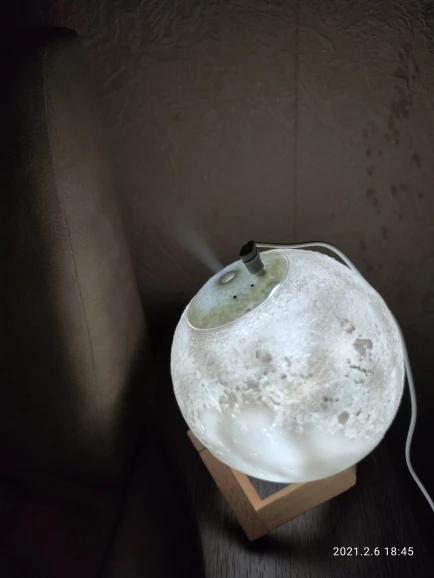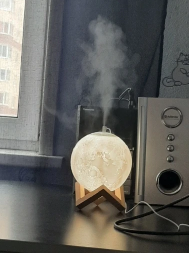 Товар пришел довольно быстро и в хорошем состоянии, не побился и не помялся. Луна действительно красиво и ярко светит, как на картинке, и имеет три варианта подсветки, которые регулируются с помощью маленькой кнопочки. Можно использовать как ночник. Струя воды вполне сильная для такого маленького увлажнителя, но скорее подходит для увлажнения небольшого пространства, рабочего места и развлечения, ибо с помощью такой маленькой мощности большую комнату увлажнить не получится. Также может послужить красивой декорацией и светильником. Подключается с помощью провода и не работает от батареек. В комплекте было 5 палочек-фильтров и две дополнительные, видимо, в подарок. Надеемся, луна прослужит долго и исправно)