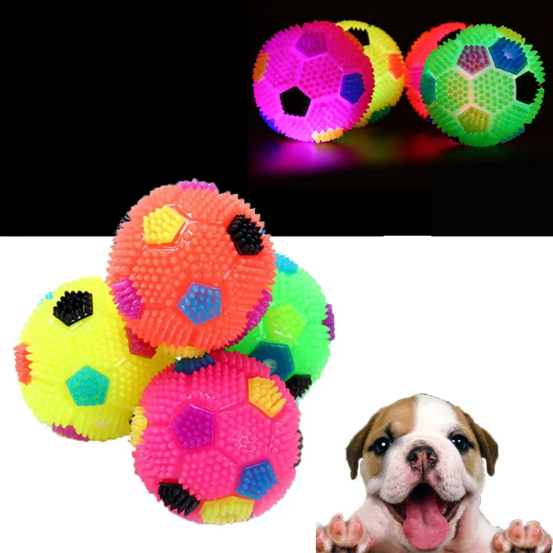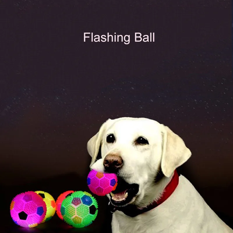 Pet dog резиновый писк эластичный мигающий футбол, красочно разработанный, может обеспечить собакам больше тренировок и увеличить движение. Шарик также может помочь очистить зубы питомца.