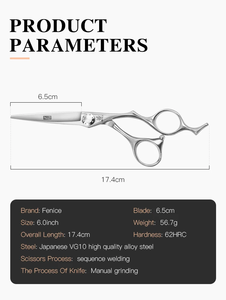 Ножницы для стрижки волос Fenice, 6,0 дюйма, из нержавеющей стали