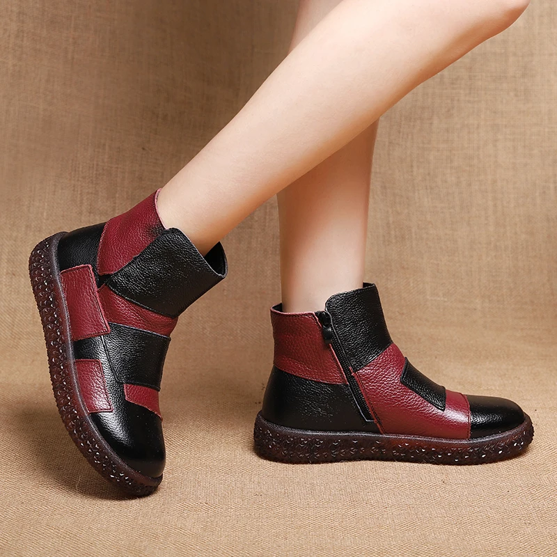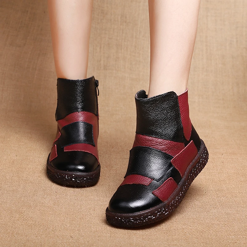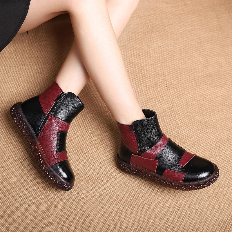 GKTINOO2021; Женские ботинки с мехом; Зимние кожаные ботинки ручной работы; Обувь на плоской подошве; Разноцветные Женские ботинки из натуральной кожи