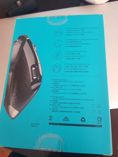Обычная мышь. Качество материала неплохое. Это нормально. Программное обеспечение не очень хорошее. Определенные функции не работают, если программное обеспечение rapoo не работает. Боковое колесо не работает в Bluetooth. Не полностью эргономично для вашей руки. Трудно использовать кнопки вперед и назад. Хорошая упаковка.