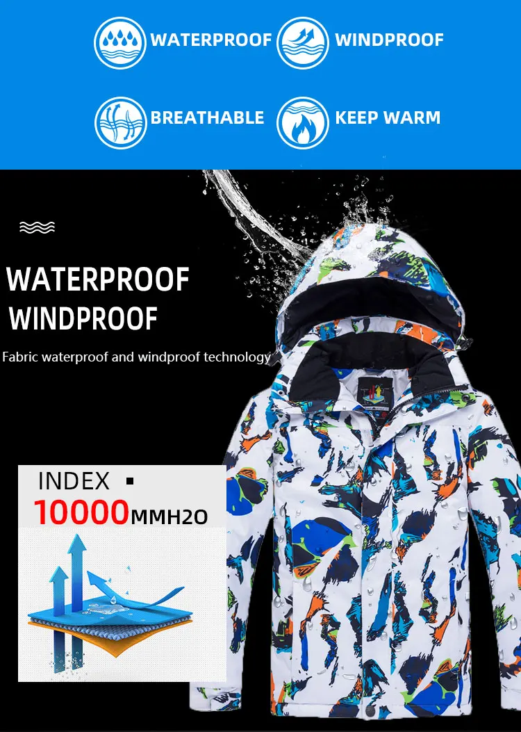 Детский зимний костюм-30, лыжный костюм для улицы, водонепроницаемы...