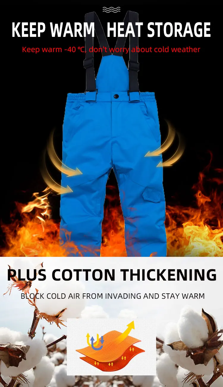 Детский зимний костюм для мальчиков и девочек, комплект одежды для сноуборда, водонепроницаемая Спортивная одежда для улицы, лыжное пальто и брюки на бретелях, детские костюмы