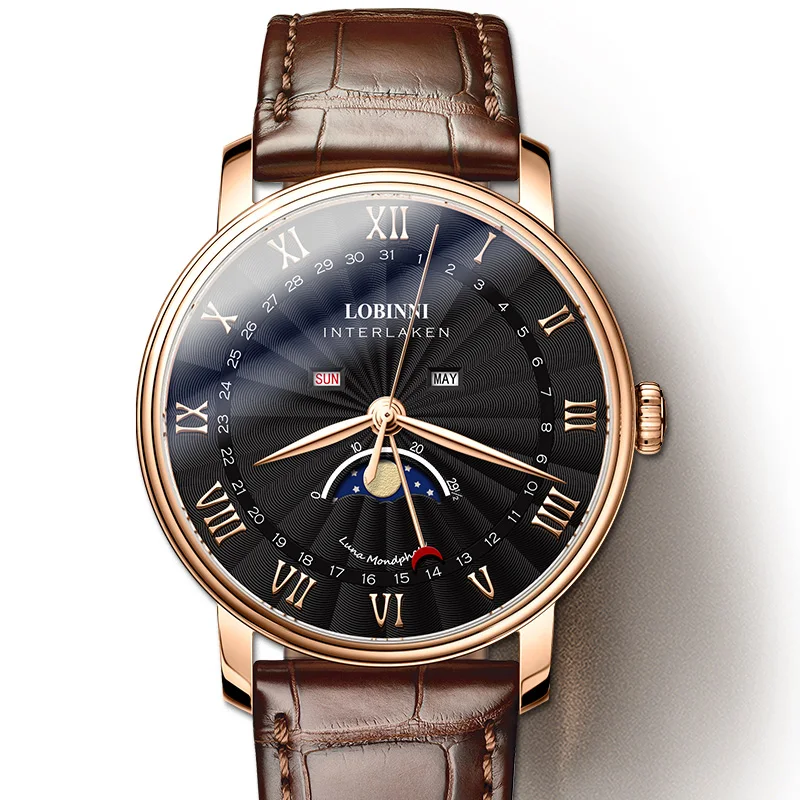 Мужские часы роскошного бренда LOBINNI, швейцарские часы, мужские водонепроницаемые часы с сапфировым стеклом и лунной фазой, японские часы Miyota Move для мужчин, t L3603-2