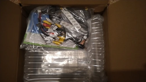 Курьер привез до двери, товар до Томской области пришёл примерно за 3 недели. Интерфейс не очень, прошивка не доработана, текст не весь переведён с английского на русский, подключение по блютузу непонятное, подключаешься с телефона, подключение есть, через секунду пропадает, приходится выключать блютуз на телефоне и заново подключаться. с телефона самсунг А 50 не регулируется громкость. Комплектация товара полная. Проводов много. Считаю, своих денег не стоит.