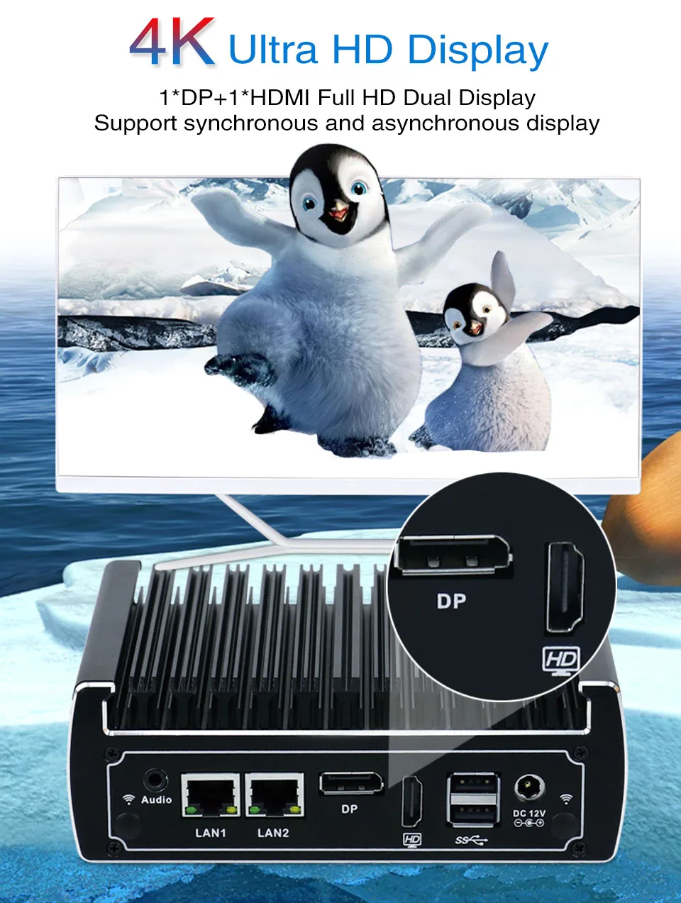 3,1 * HDMI + 1 * DP +4 * USB3.0+ 2 * USB2.0 +2 * LAN+ 2 * COM + 1 * Выключатель питания + 1 * аудио (поддержка микрофона и аудио);