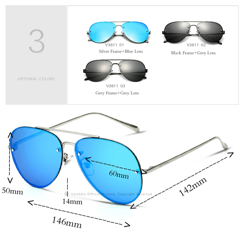 Солнцезащитные очки унисекс VEITHDIA, дизайнерские Брендовые очки без оправы, с поляризационным покрытием, зеркальные, для мужчин и женщин