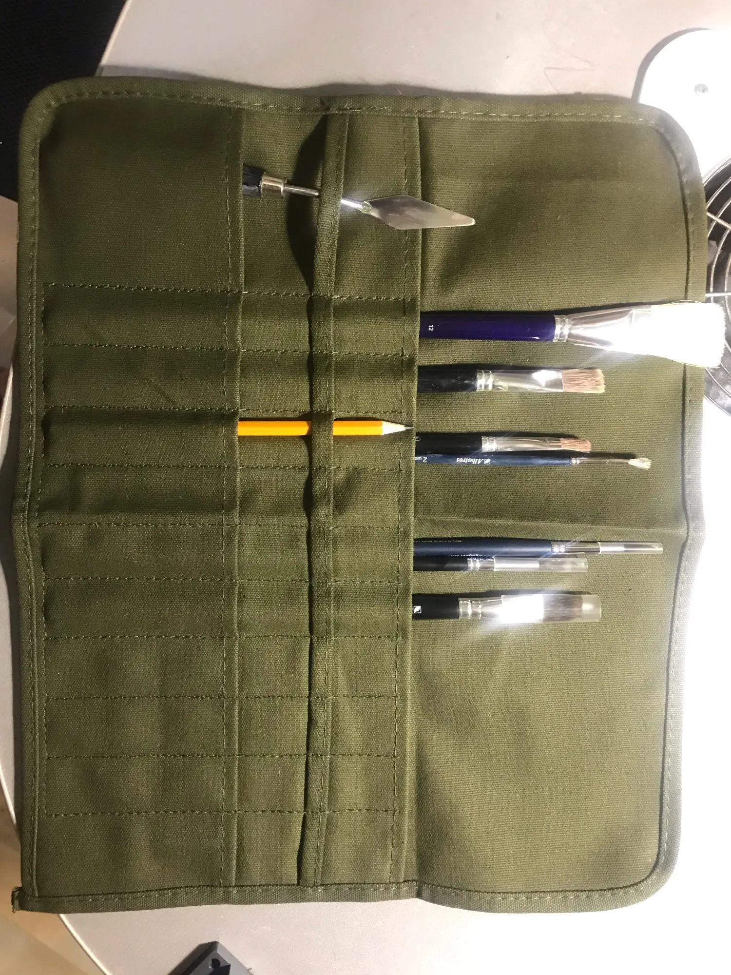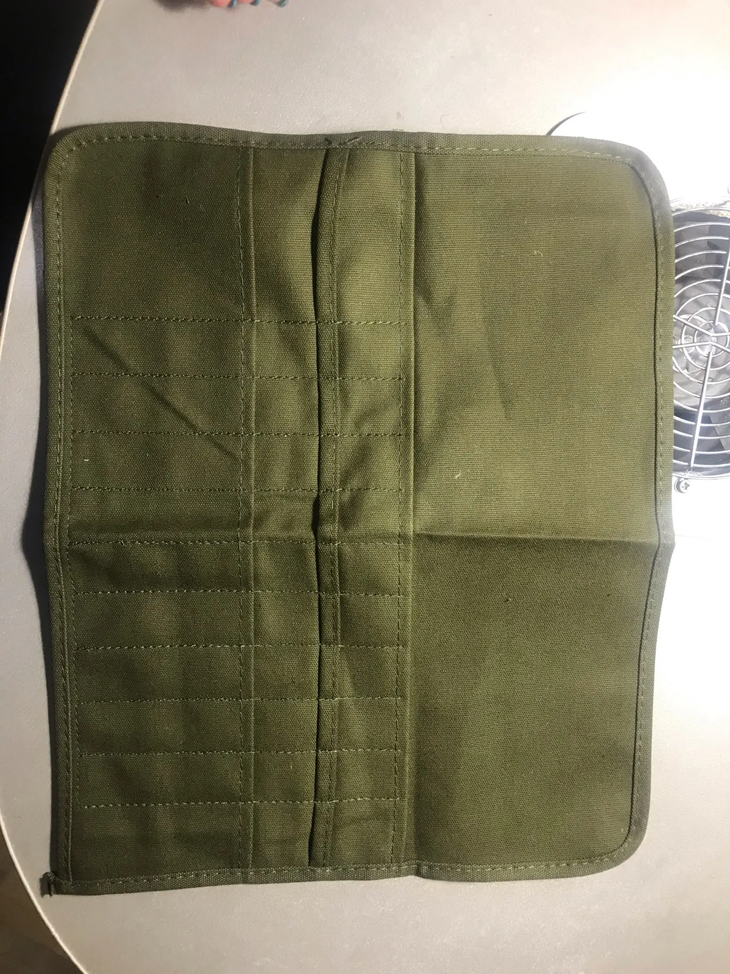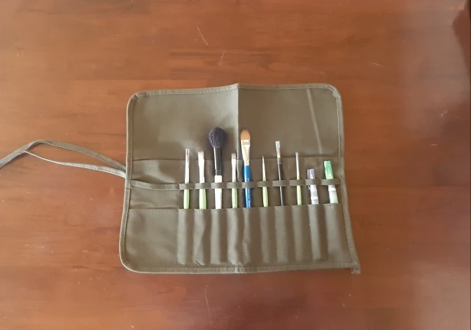 Tecido e costuras de ótima qualidade, consistentes. Cabem vários pincéis finos em cada divisória. Perfeito!