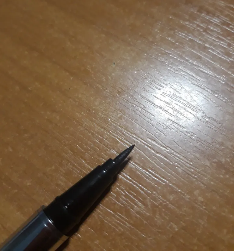 Шёл товар очень долго, если честно я его уже и не ждала, но наконец то пришёл спустя два месяца!! Сам товар не плохой, но сам край подводки (чёрный хвостик) слишком острый и твёрдый, надо быть аккуратней, можно повредить глаз, мне нравятся более мягкие и рисуют они прям тоненько