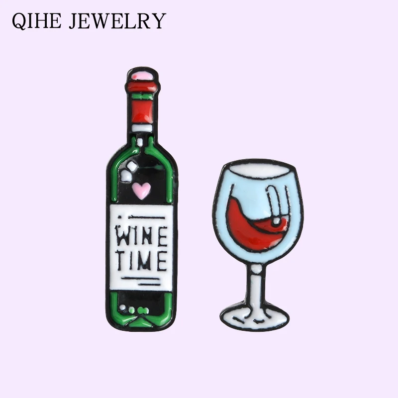 1-2 шт., металлическая эмалированная мини-брошь в форме бокала и бутылки вина