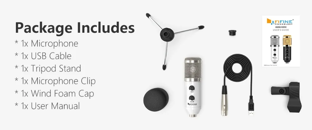 Конденсаторный микрофон FIFINE, разъем USB, для ПК, Macbook, для онлайн-обучения, чата, со штативом, зажимом для микрофона