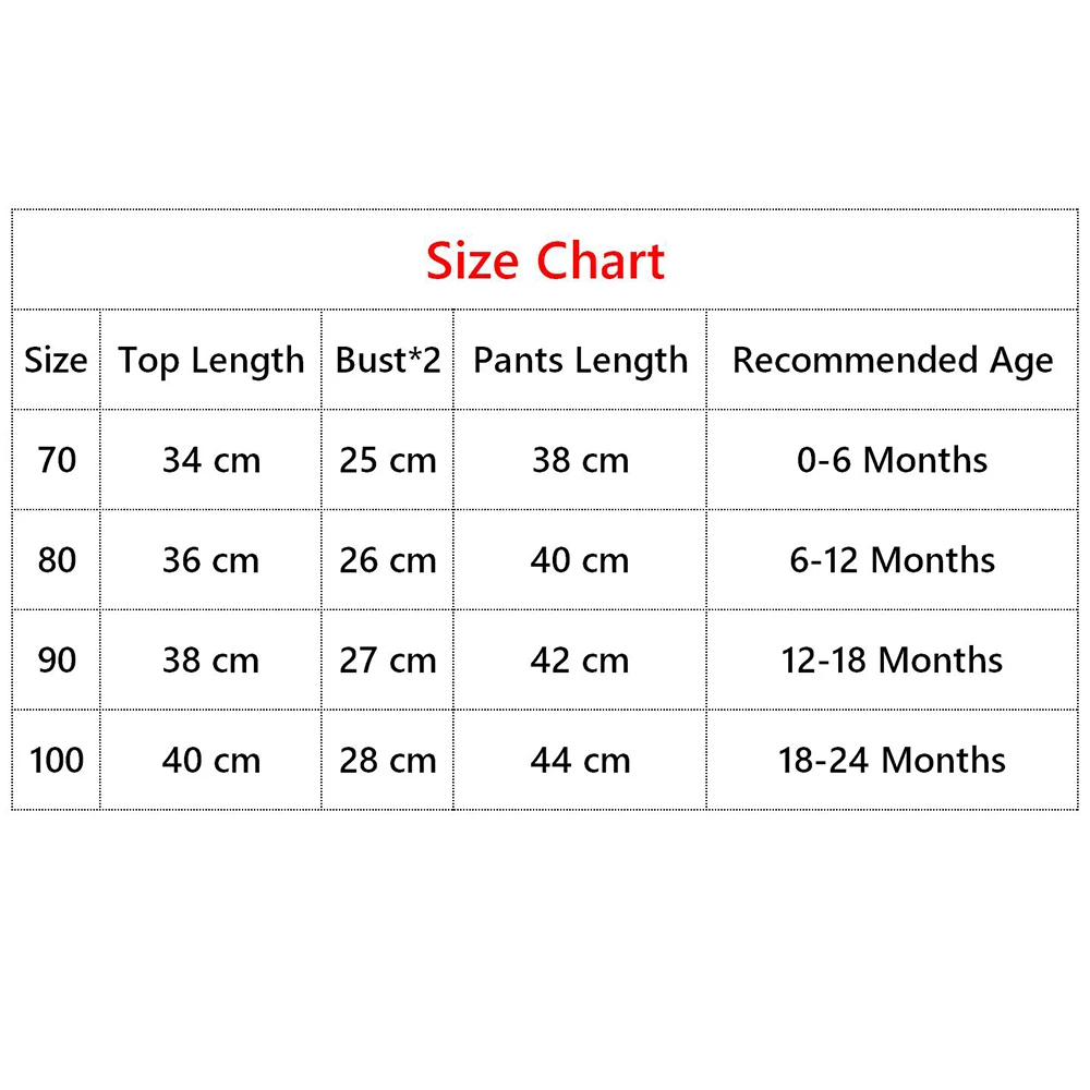 Размеры Длина верха Бюст * 2 Длина брюк Рекомендуемый возраст 70 34 см 25См 38 см 0-6Месяцев 80 36 см 26См 40 см 6-12Месяцев 90 38 см 27См 42 см 12-18Месяцев 100 40 см 28 см 44 см 18-24 месяцевРазница в 2-3% в соответствии с измерениями вручную. Прежде чем купить эту товарную позицию, просим тщательно свериться с таблицей размеров. 1 дюйм = 2,54 см Обратите внимание что небольшая разница в цвете считается приемлемой. Это может быть связано с положением источника света и с настройками экрана.