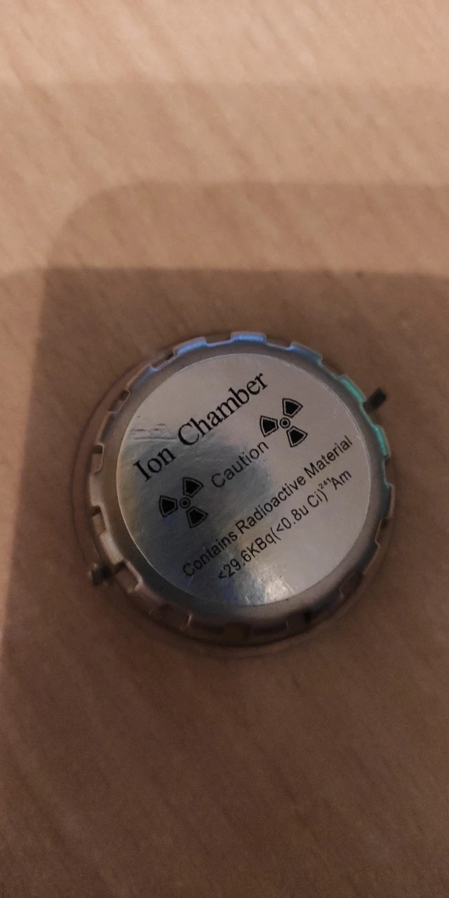 Описание:Этот датчик содержит небольшое количество изоопа Americium 241.Америциум испускает альфа-частицы и слабое гамма-излучение, альфа-частицы полностью блокируются корпусом датчика, gamMa излучение, однако, свободно проходит через корпус, но из-за очень низкой энергии около 60 Кев быстро поглощается воздухом (максимальная пробежка через воздух 15 см).Это отличный источник для проверки гамма только чувствительные счетчики Гейгера, если у вас есть такой тип счетчика, невозможно будет проверить его с другими источниками, которые излучают только бета-частицы.Он также может быть использован для тестирования гамма-спектрометров.Добавьте хороший «горячий» кусок в вашу коллекцию, который излучает Альфа и гамма-излучение.SBM-20 пробка основанная Гейгер счетчик показывает 140 отсчетов в минуту из этого источника с гамма-фильтр (один грамм бисера вмещает приблизительно 80 uR/ч или 0,8 usв/ч соответственно).Характеристики:1) Характеристики источника ионизации и безопасность излучения:2) камера ионизации оснащена высокой производительностью и низкой активностью ионизации Am-2413) активность источника ионизации: 0.5uCi ( 18KBq ) 0.8uCi ± 10% ( 30KBq ± 10%)4) источник ионизации а спектроскопия: пик: 4.5MeV ± 10%, FW HM<0.7MeV5) стандарты безопасности (GB4075, IS02919 ) C644446) Частота дозы ионизационной камеры при 25 см: 0.03mGy/ ( 1mGy значение ниже, чем стандарт дозы популяции)7) Спецификация камеры ионизации, параметры:8) условия: внешний электрод и напряжение электрода источника (напряжение питания VDD): 9 В9) температура окружающей среды: 20 + C: близкое к атмосферному давлению стандартное атмосферное давление, чистый воздух10) сбор электрод равновесия потенциал: 5,3 ~ 6,5 V11) потенциал сбора электродов с изменением концентрации дыма12) светильник снижение ставка 1% средства ухода за кожей Стоп: 0,6 V13) светильник снижение ставка 4% средства ухода за кожей Стоп: 2,2 V14) изолятор ток утечки (макс.): 0,5 Pa16) конденсатор (набор экстримального внешнего электрода + к исходному основанию): 6.0pFМатериал: металлЦвет: серебристыйРазмер: 27x15x3 7 мм/0,8 "x 1,1" x 0,5"Посылка включает в себя:1 датчик детектора дыма