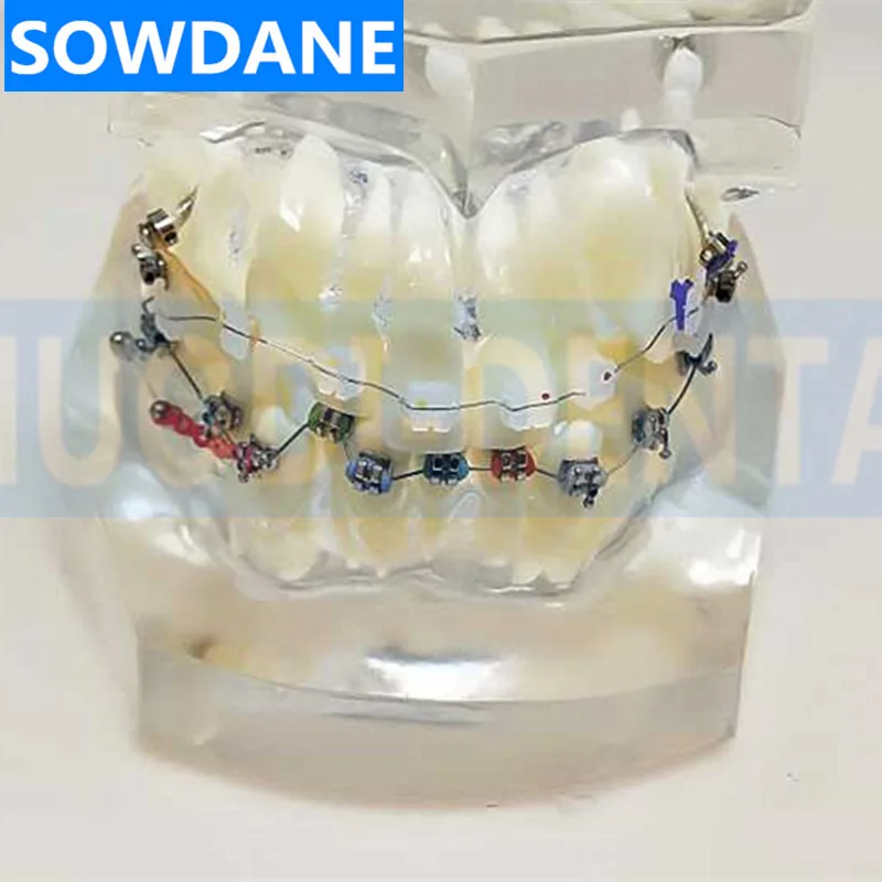 Прозрачный Стоматологическая Ортодонтическая щеточка Mallocclusion модель с психического Керамика кронштейны нить из Ортодонтическая щёчная направляющая трубка для пациента Связь