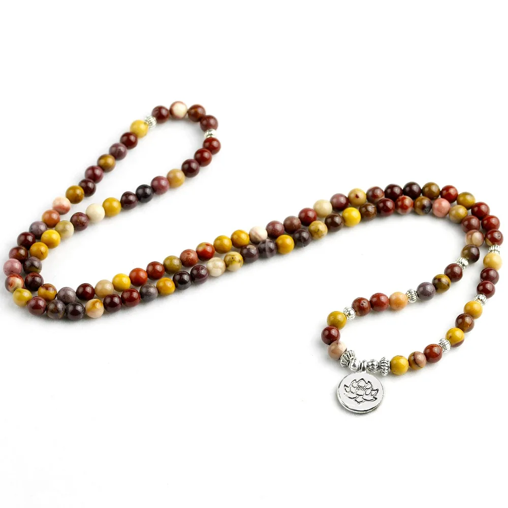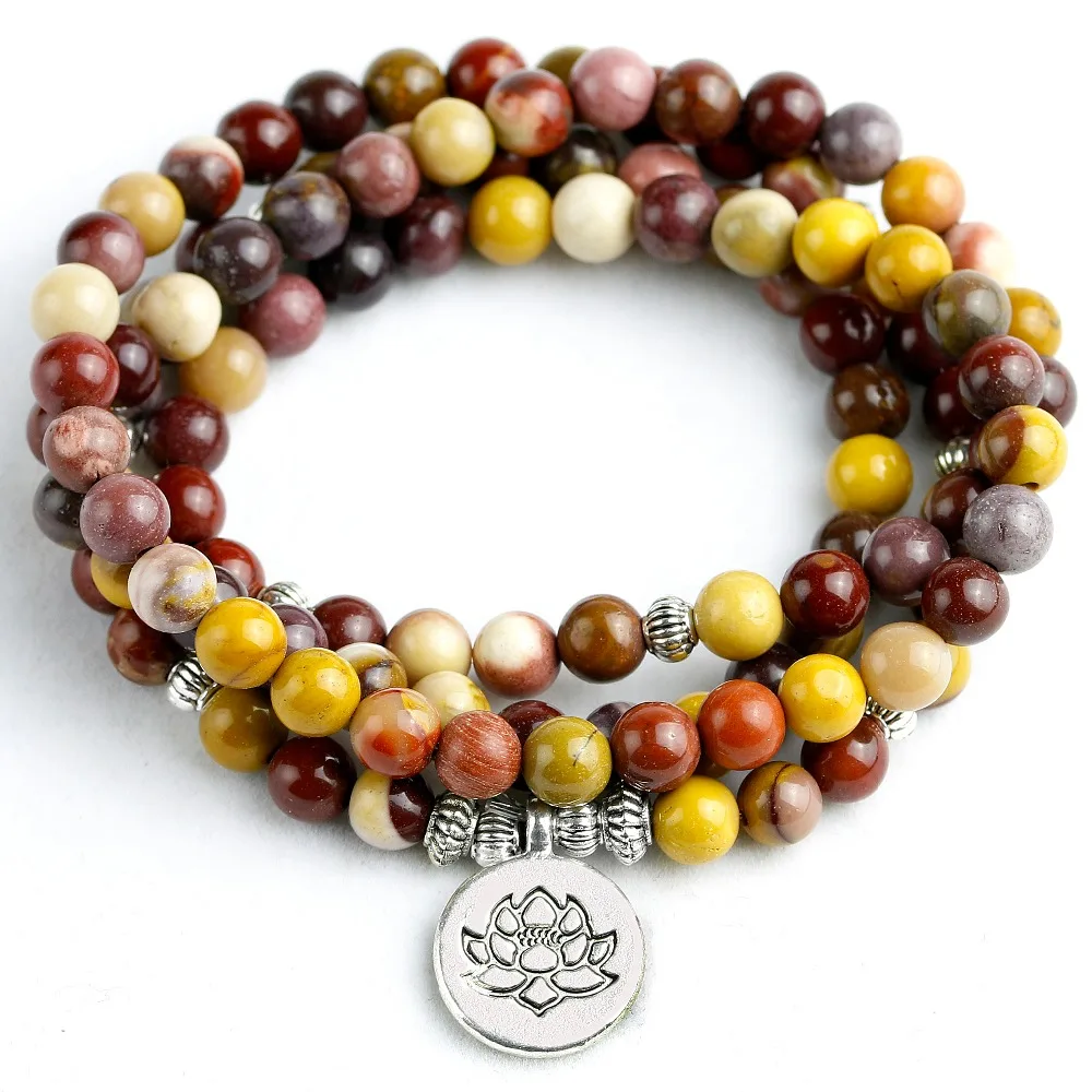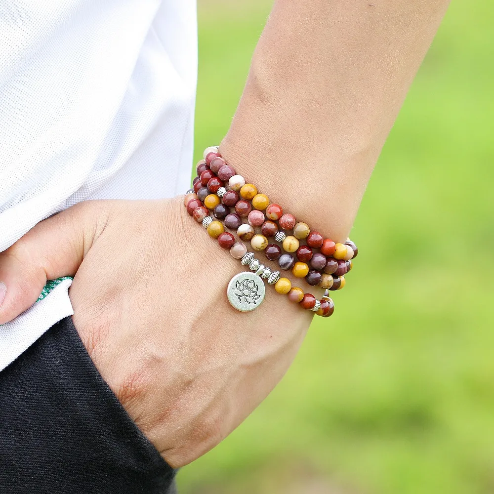 Браслет Mookaite 6 мм из натурального камня, оберточный браслет для женщин и мужчин, 108 мала-йога, OM, Будда, украшения Крылья, новый дизайн