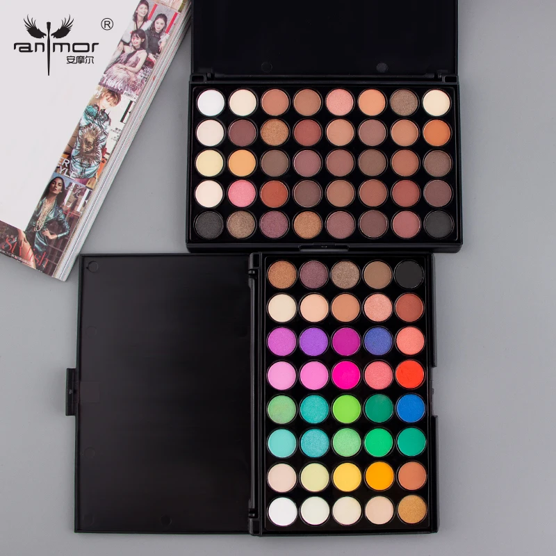 Макияж для глаз ANMOR 40 цветов, матовые блестящие тени для век, Алмазный мерцающий праймер для век, светящиеся тени для век, Палетка подарочных женских теней