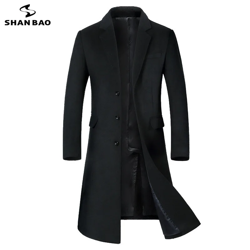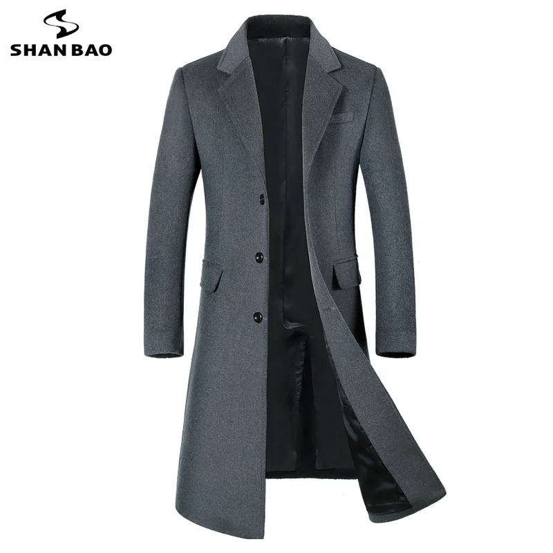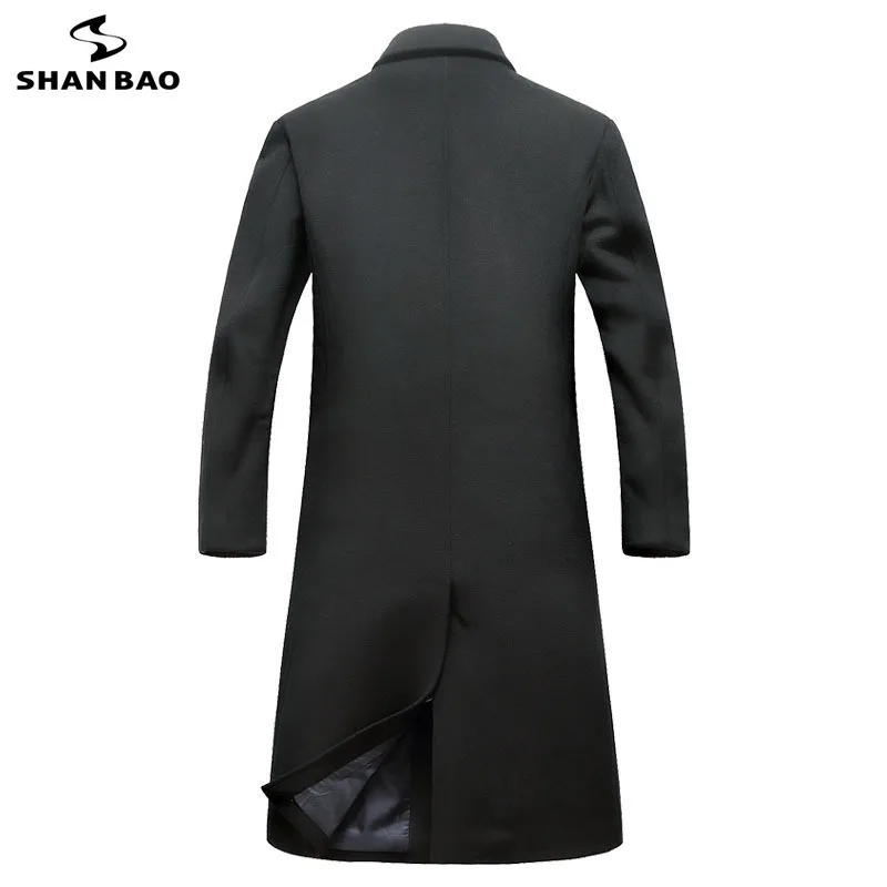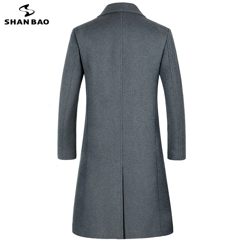 Зимнее плотное теплое мужское Брендовое шерстяное пальто SHANBAO, роскошная Высококачественная деловая Повседневная Длинная однобортная приталенная шерстяная куртка