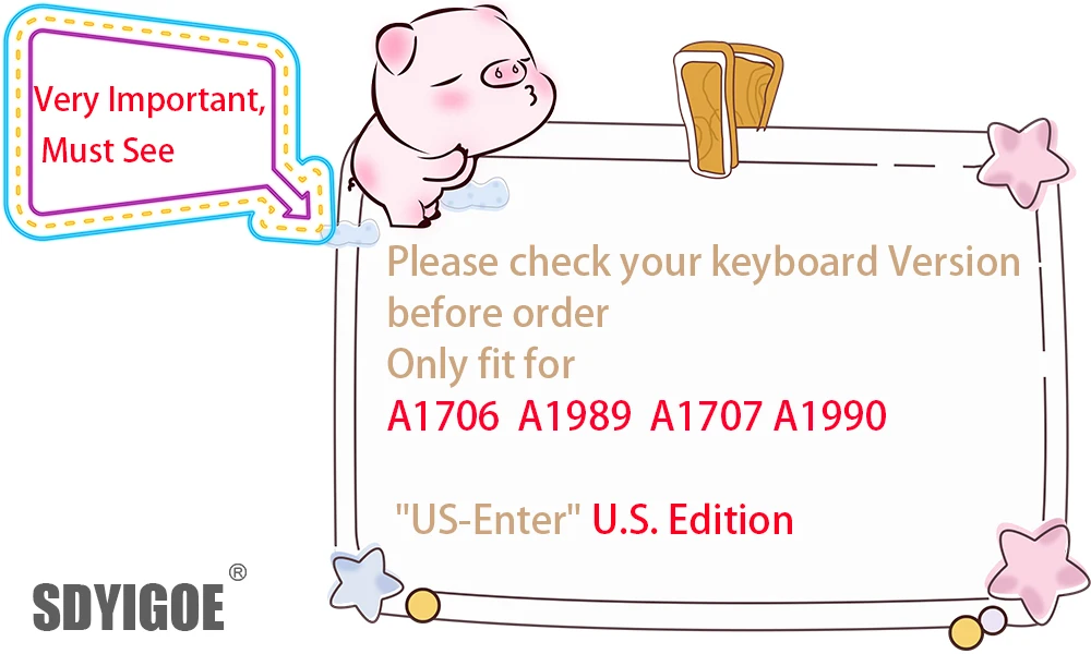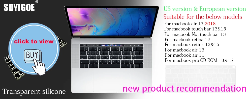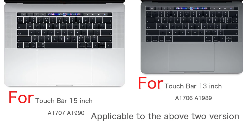 Необходимо посмотреть перед покупкой Совместимость с:Для Macbook Pro 13 "с сенсорной панелью A1706 A1989Для Macbook Pro 15 "с сенсорной панелью A1707 A1990Этот чехол для клавиатуры только для американской версии клавиатуры