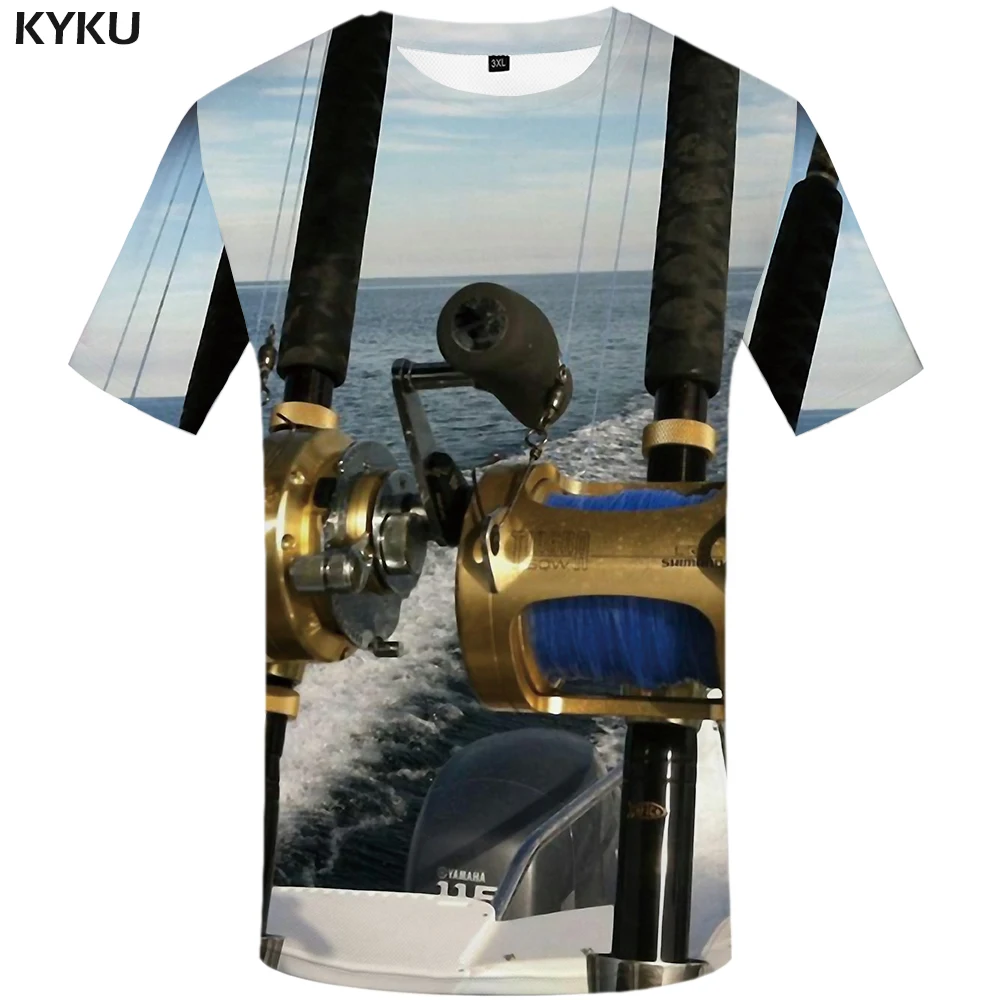 Мужская футболка KYKU, с 3d принтом рыбы, в стиле панк-рок