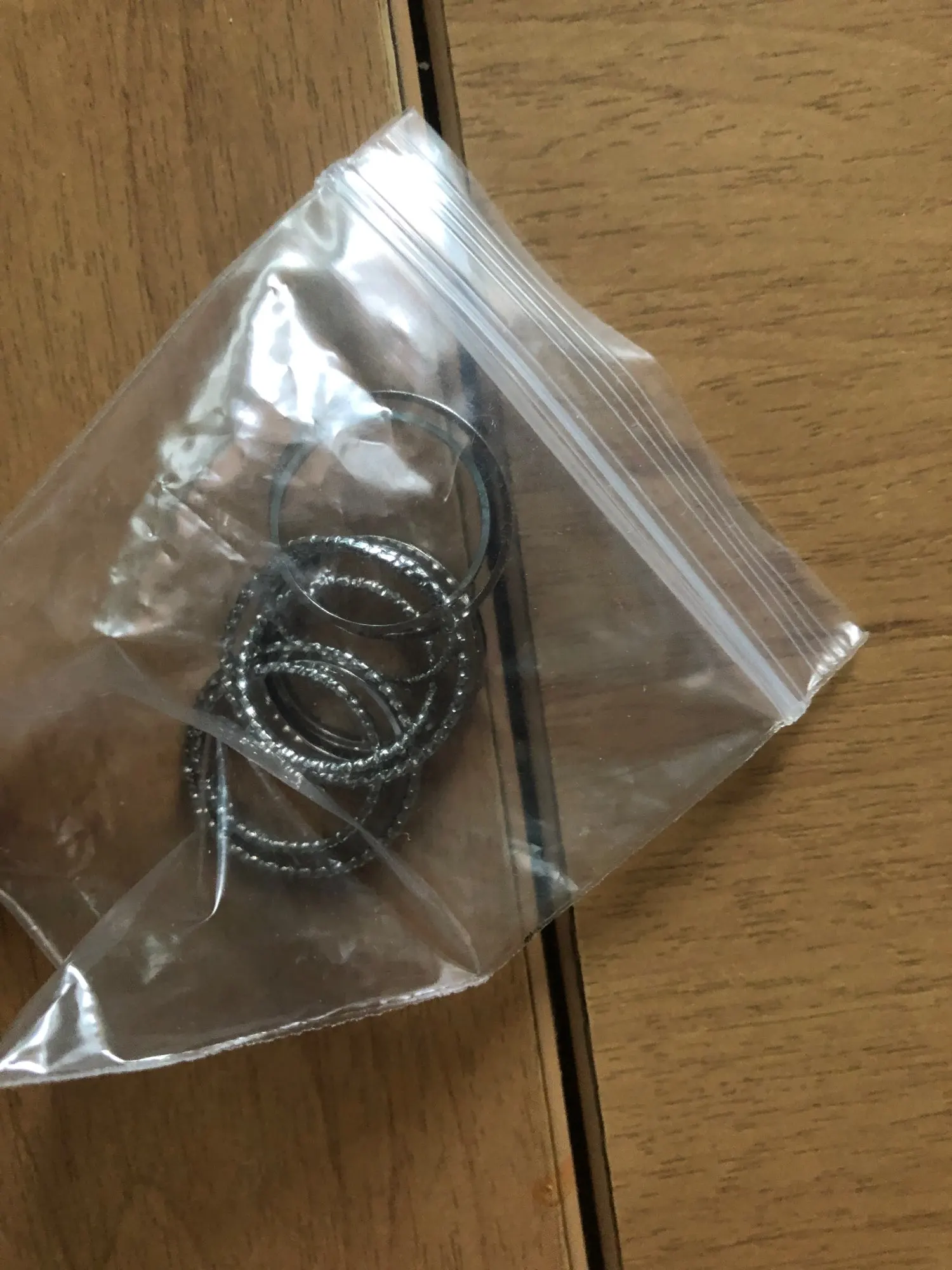 Кольца пришли и в полном комплекте. Размер несколько больше указанных (примерно на 1 размер) довольно токие, но выглядят хорошо. Пришли упакованными в миниатюрный пакетик. При транспортировке ничего не погнулось.