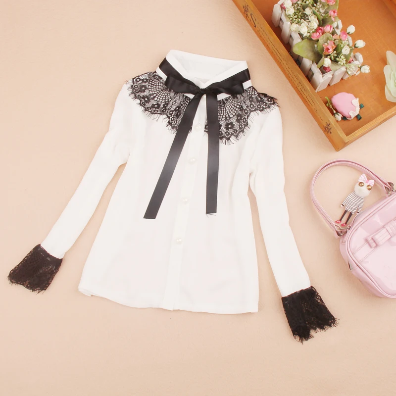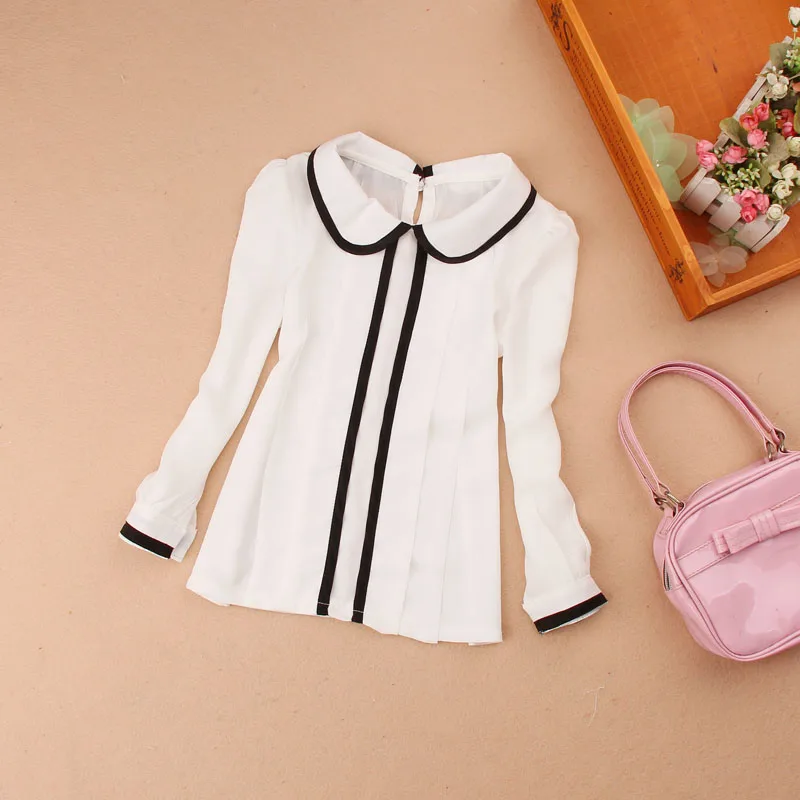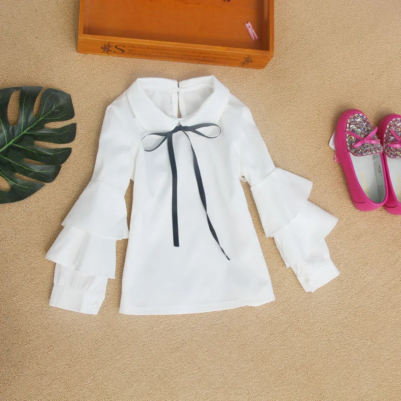 Новое поступление, Весенняя шифоновая белая блузка для учеников младшей школы 2019, Повседневные базовые рубашки, для малышей, подростков, с бантом, одежда 13Y