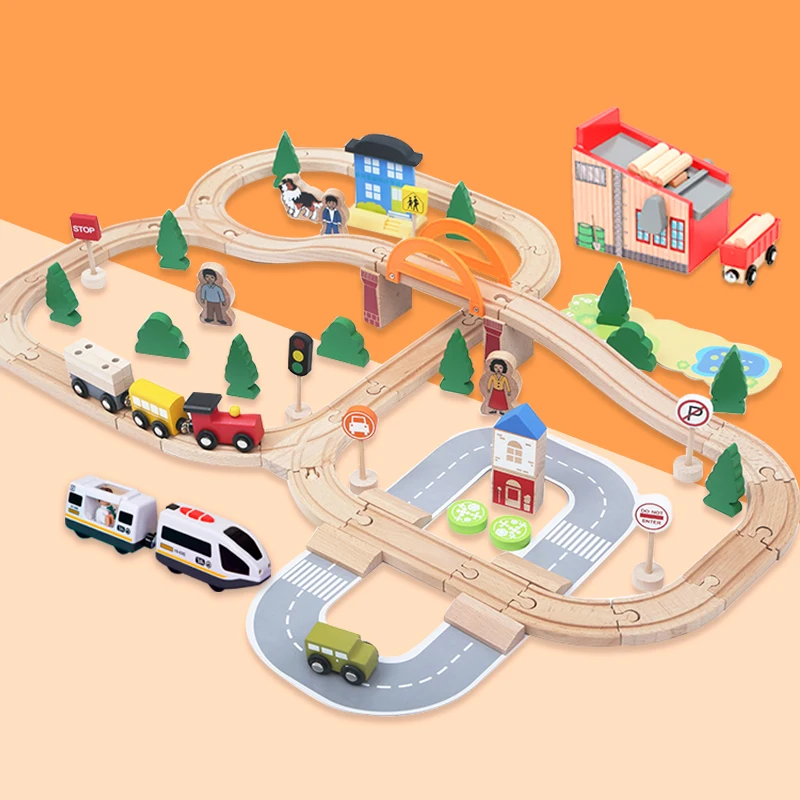 Деревянная железная дорога, мост, деревянная железная дорога, совместимое кольцо, круглая сборка, магнитный поезд, игрушки для детей