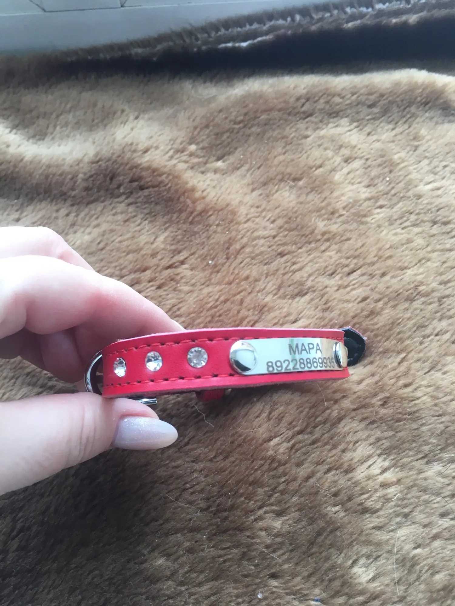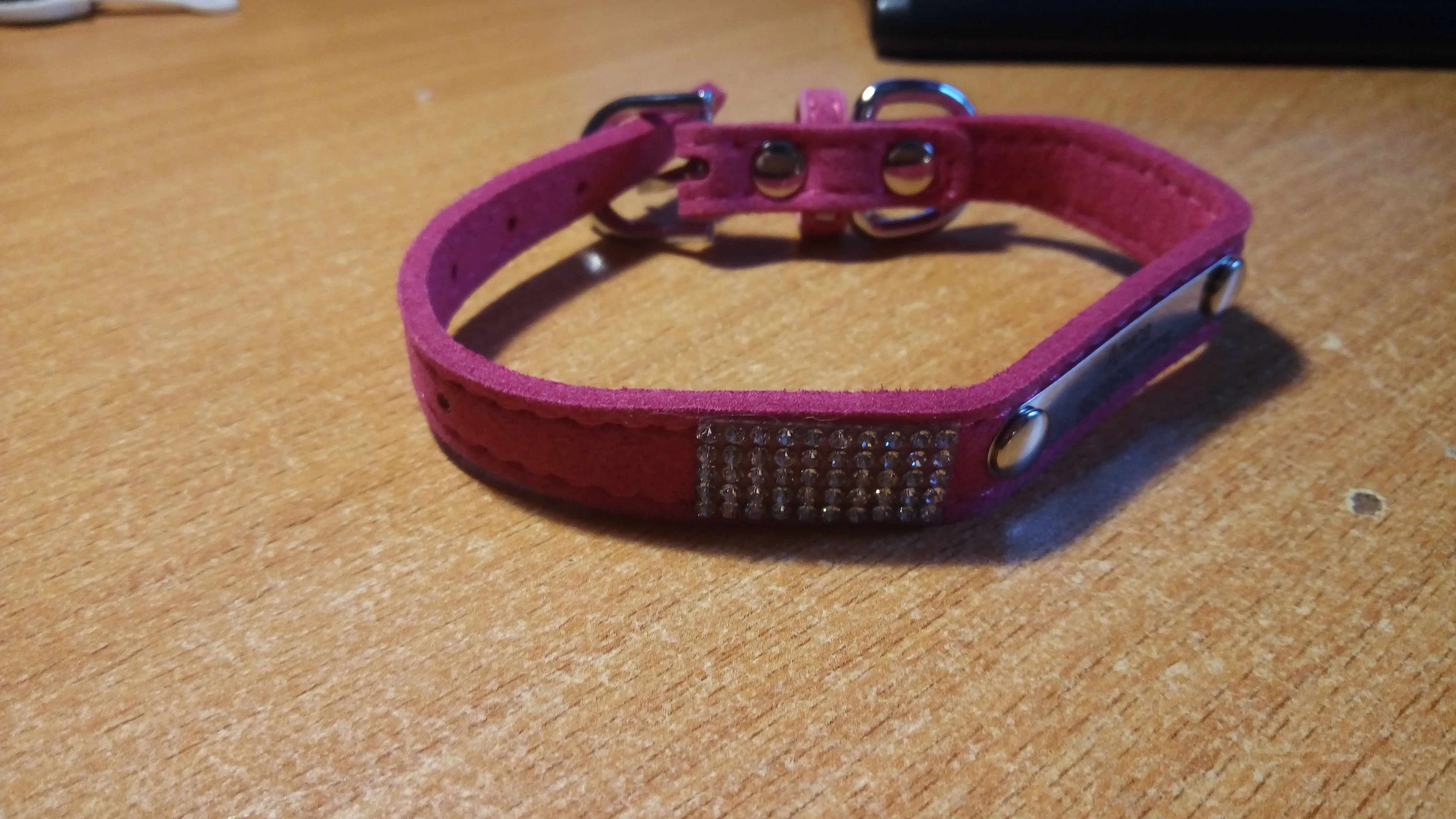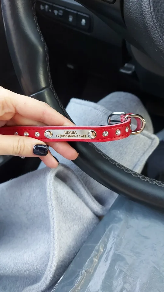 отличный ошейник. полностью соответствует фото продавца. отправили быстро. доставка до Ленинградской области 2 недели. трек отслеживался. на размер шеи 22 см застегивается на среднюю дырочку. кристалики были под плёночкой. пластина с текстом тонкая, можно при необходимости "закруглить" по форме шеи. упаковано в пупырку и бумажный конверт. текс писала в сообщении. с продавцом не общалась. Всё написали как надо. спасибо.