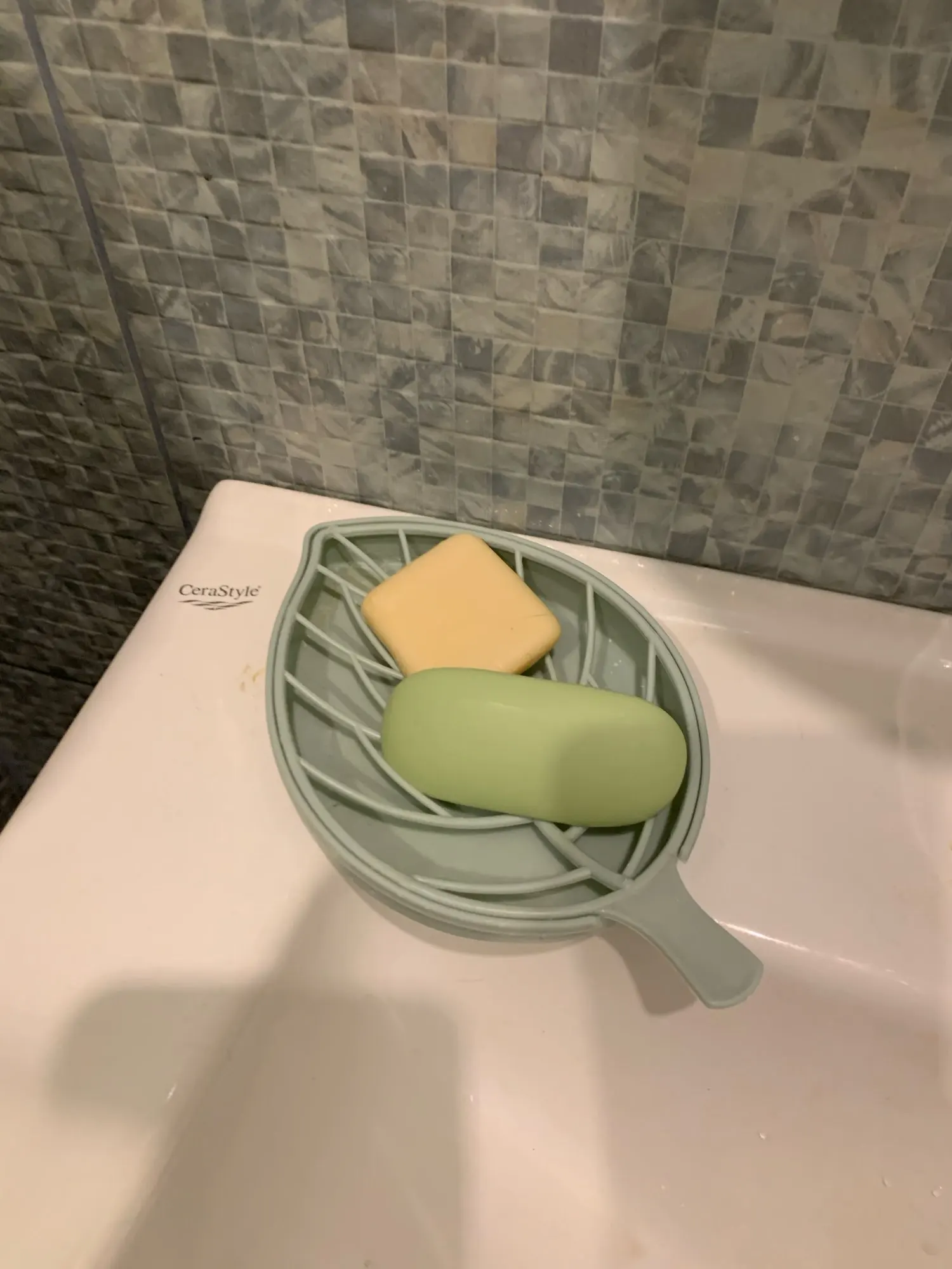 очень удобная мыльница. размер отличный- не большая и не маленькая. мыло в ней не раскисает и вода не застаивается.