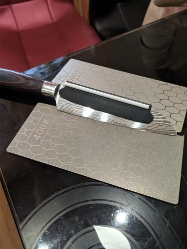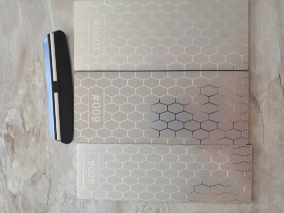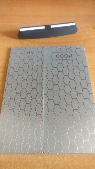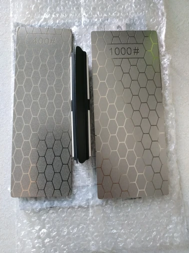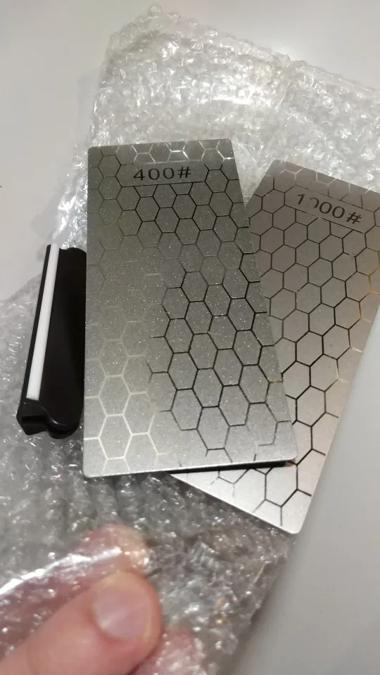пришёл заказ вовремя, трек отслеживался. по заточке ножей ничего особенного не скажу, точит как обычный брусок. взяли только из-за отзывов, попробовали- ничего особенного. разницы между заточкой на 400плашке и 1000 мы не нашли
