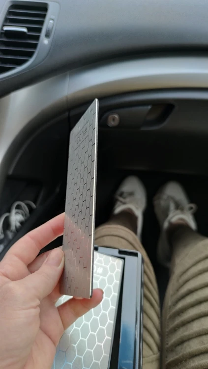 Всё привет. По качеству претензий нет. Обычная металлическая пластина с напылением. Грызёт хорошо. По удобству троечка. Тонкая, лёгкая.,чуть сильнее нажим скользит. Не смотря на пртивоскользящее покрытие с обратной стороны. Кстати наклеено не очень аккуратно. Взял попробовать. Но к покупке не советую. Товар шёл две недели, трек номер отслеживается,с этим проблем нет. Покупать или нет решать вам.