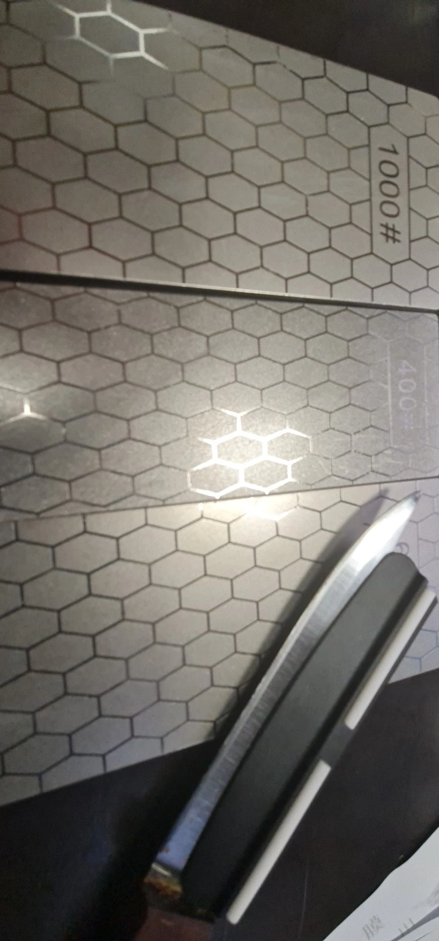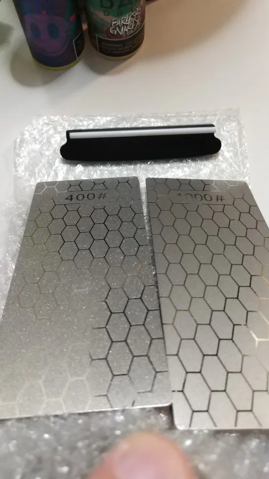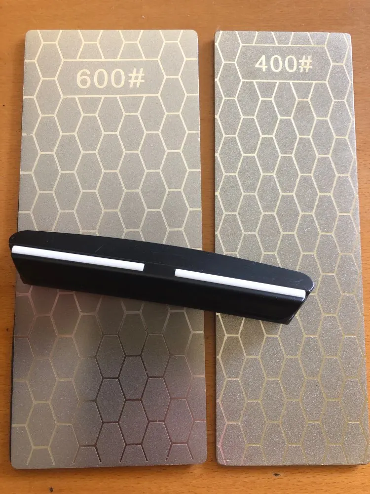 Камни хорошего качества. Металл жрут довольно быстро. Проблема только в том, что фиксатор угла стачивается об камень также хорошо, как и сам нож.