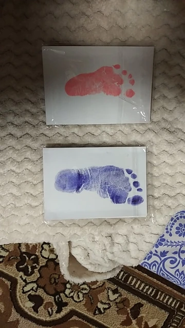 С продавцом не общались. Отправка очень быстрая. Товар хорошего качества. Заказывали 2 шт синий и розовый. Хватает полноценно на 2 отпечатка.У нас одному ребенку 4мес,второму 2,4года. У старшего ножка в рамочку не вошла,но мы выкрутились прикасались частями,вышло хорошо. Мы довольны
