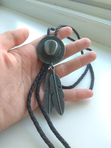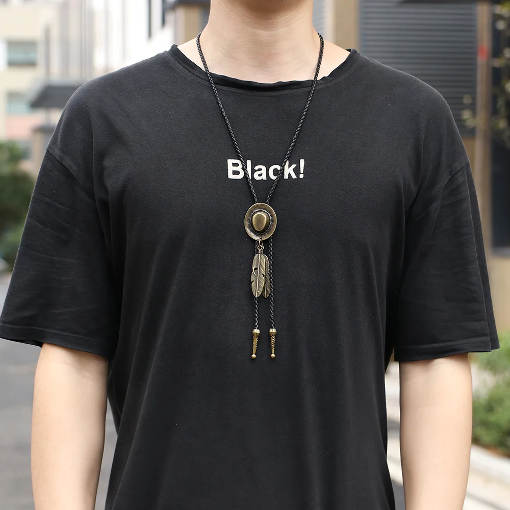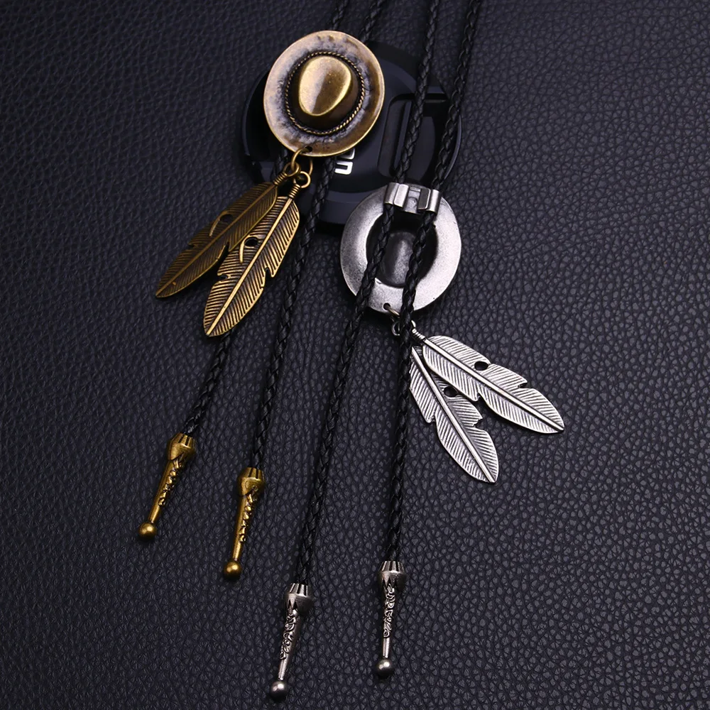 Винтажная ковбойская шляпа в стиле джаз для мужчин и женщин, длинное ожерелье из сплава, с кожаной веревкой, для свитера, рубашек, Боло-галстука, аксессуары для мужчин