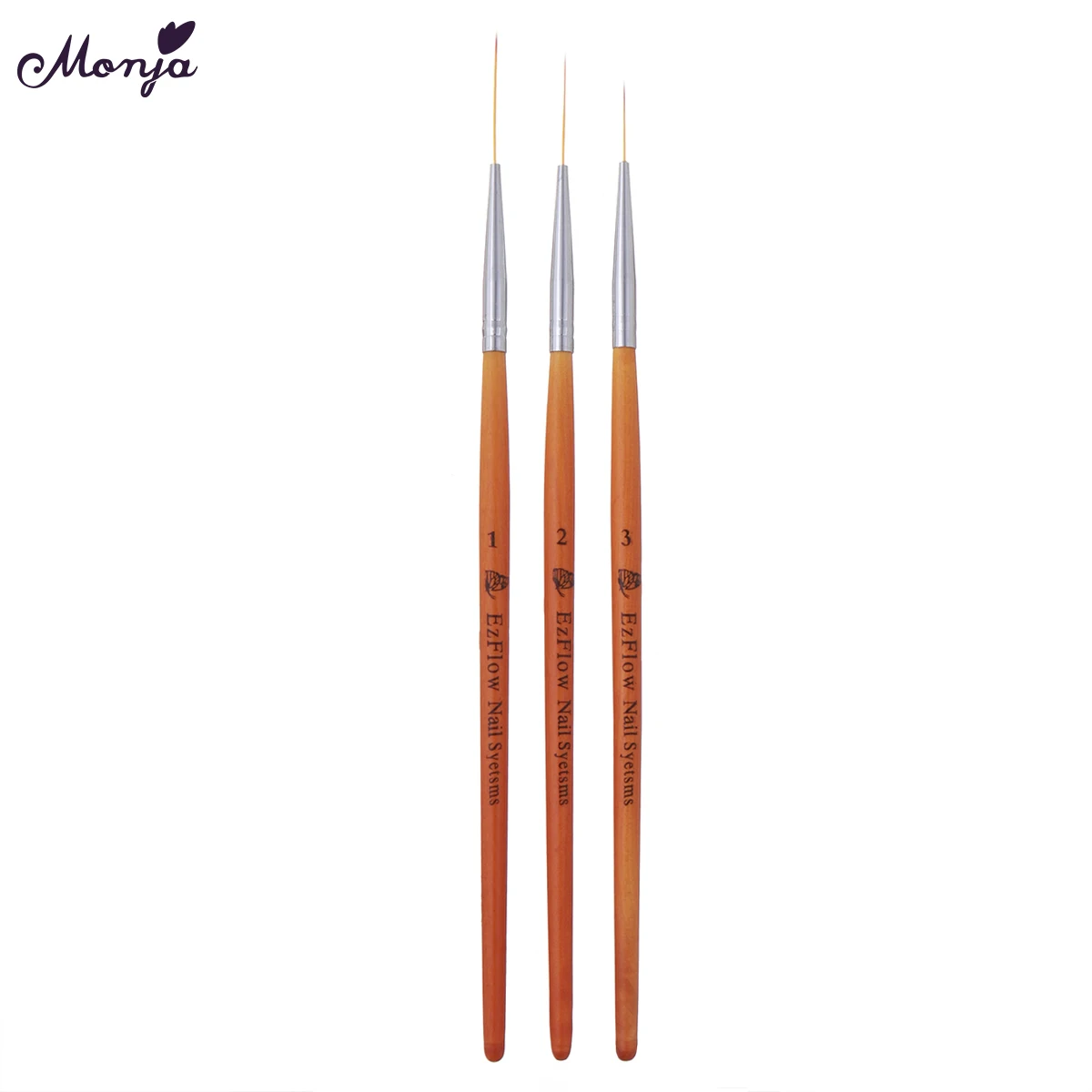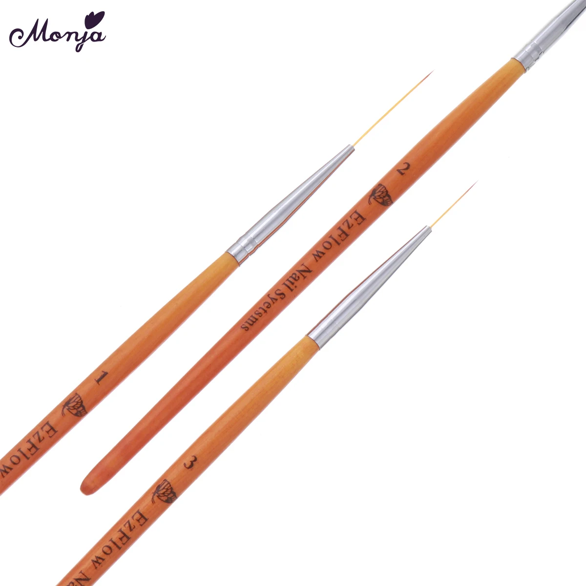Monja 152025 мм 3 шт., для дизайна ногтей, деревянная ручка, Французская живопись, кисти, линии, подкладка, Цветочная сетка, изображение, сделай сам, ручка для рисования, инструмент для маникюра