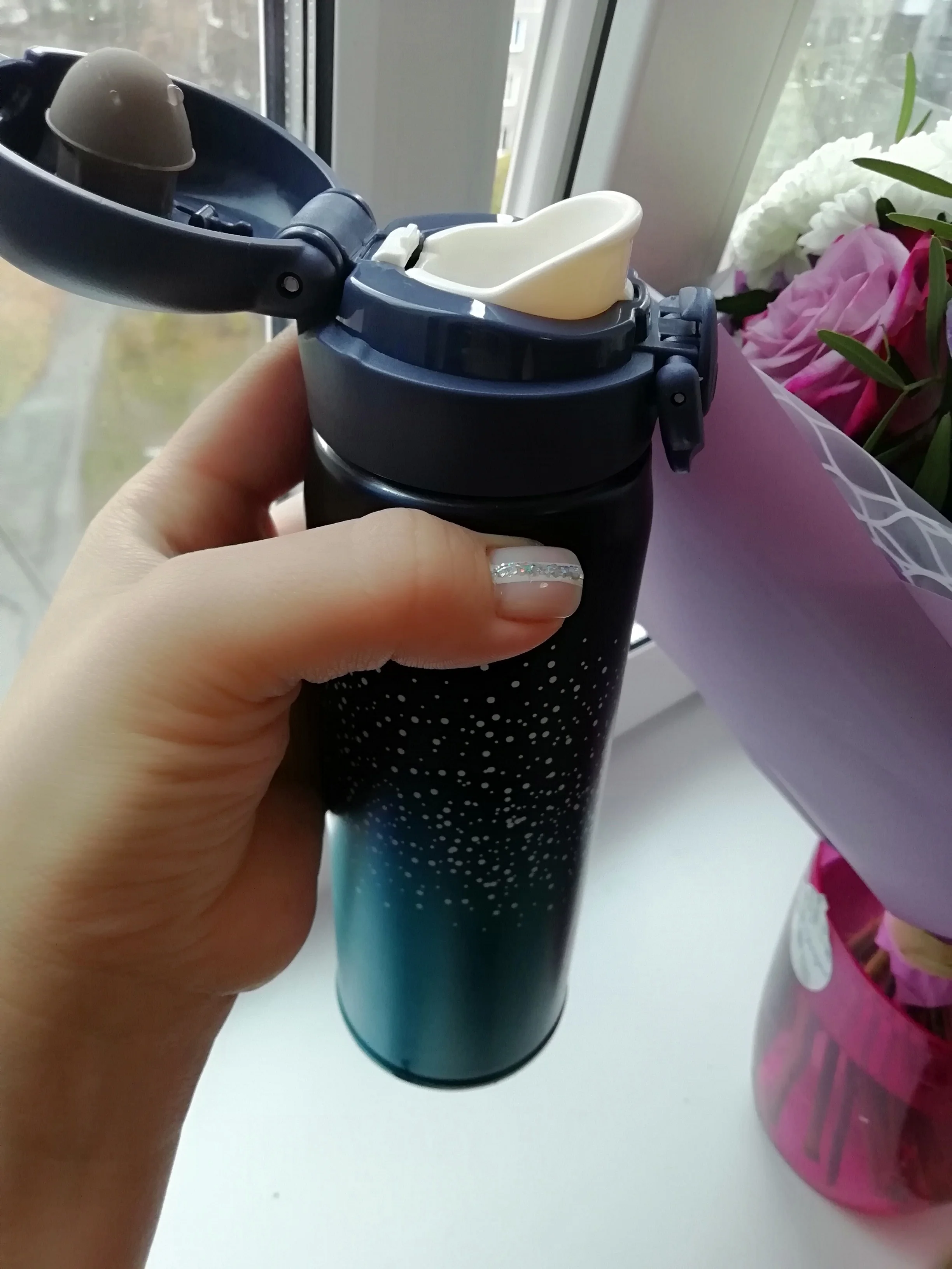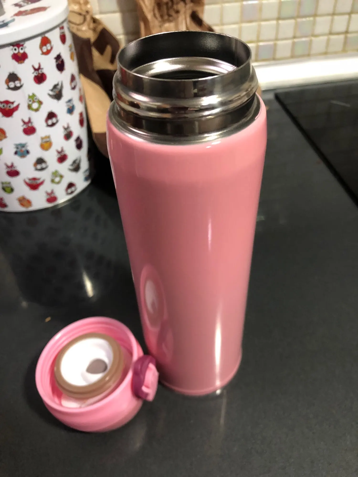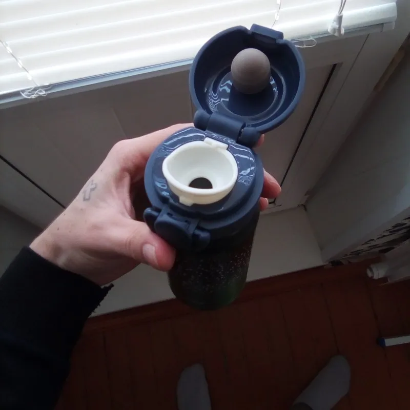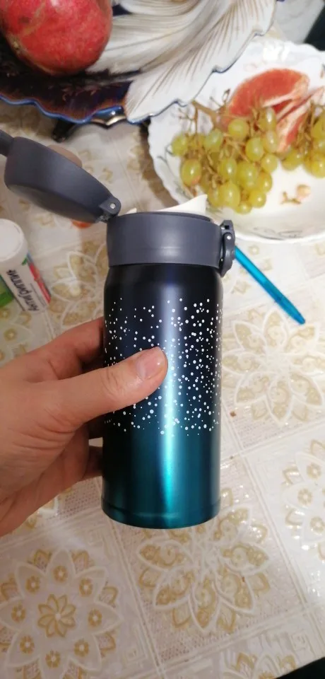 Очень довольна, термос как на картинке, красивый, аккуратный, не протекает, плотно закрывается и легко открывается, легкий, удобно пить, долго держит тепло, уже 6 часов назад залила кипяток, решила проверить и аккуратно глотнула и обожглась, не ожидала, что так долго сохранится высокая температура. Я уже столько термокружек переменяла. Эта пока новая, радует. Рекомендую!