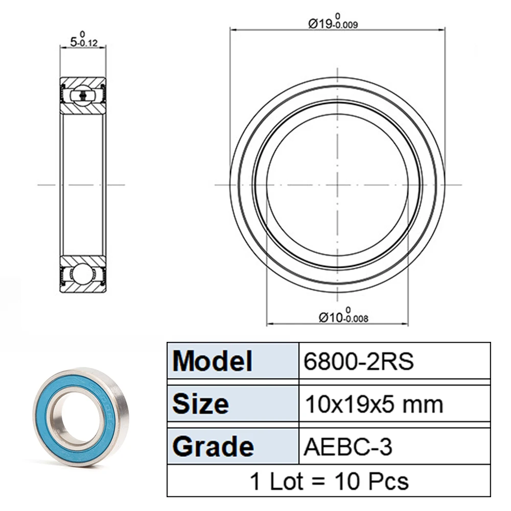 Подшипник 6800RS 10 шт. 10x19x5 мм ABEC-3 Радиоуправляемый электромобиль грузовик 6800 RS 2RS шарикоподшипники 6800-2RS синие герметичные