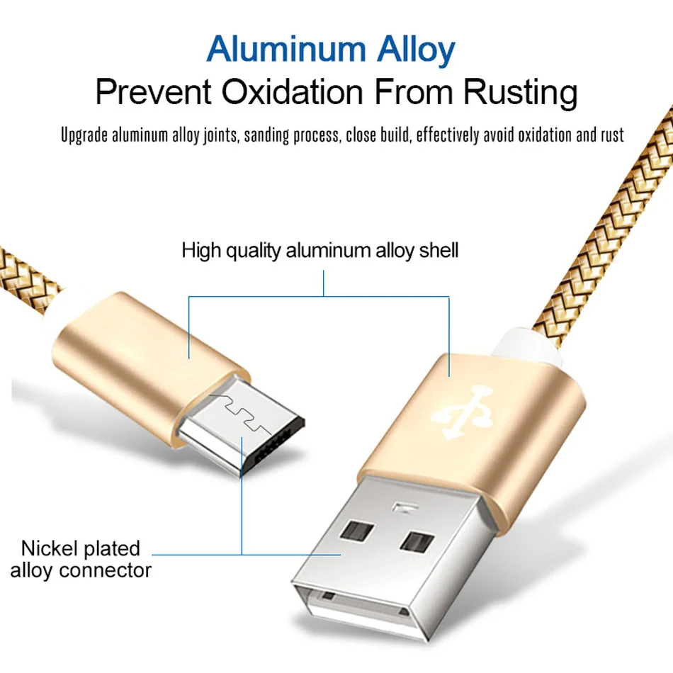 Micro USB кабель 2.1A мобильный кабель для передачи данных 1 м 2 м нейлоновый шнур для Xiaomi Redmi Note 5 Быстрая зарядка провод для Samsung Galaxy S6 S7 Edge