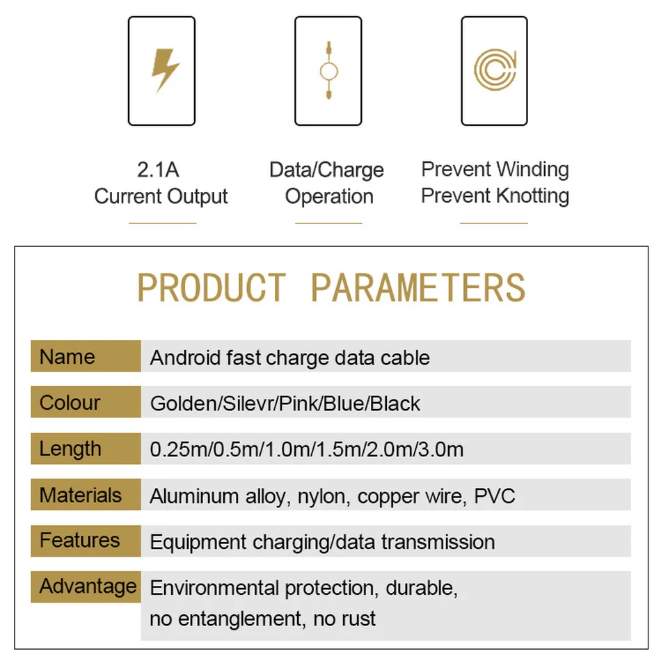 Цвет кабеля: синий, розовый, золотой, серебристый