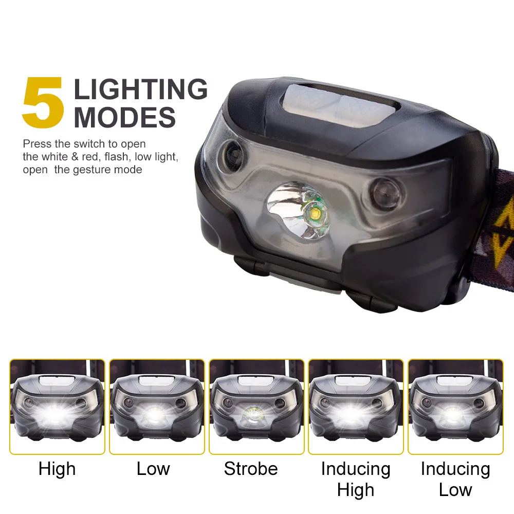 Светодиодный Перезаряжаемые бег налобный фонарь USB движения Сенсор налобный фонарь Кемпинг светодиодная вспышка светильник головной светильник Фонарь лампы Открытый Водонепроницаемый светильник