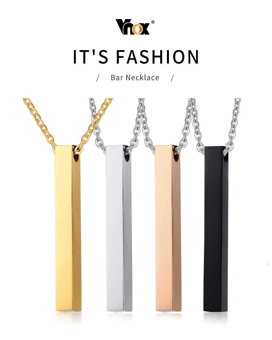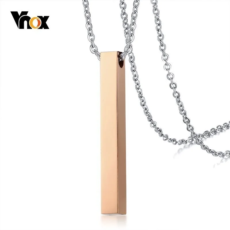 Vnox нержавеющая сталь Вертикальный бар ID кулон ожерелья для мужчин женщин полированный