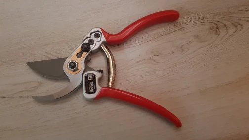 очень качественный секатор, рукоятки из твердого алюминия, режущая часть хорошо подогнана