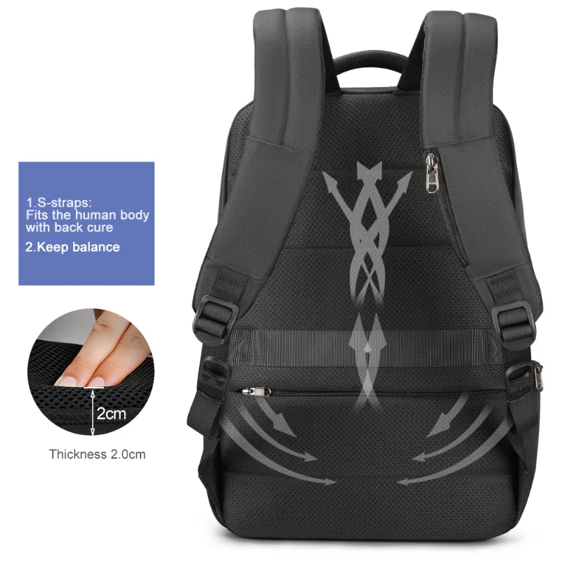 Main pocket1 zipper pocket, 1 power bank pouch,2 pouches,1 laptop pouch