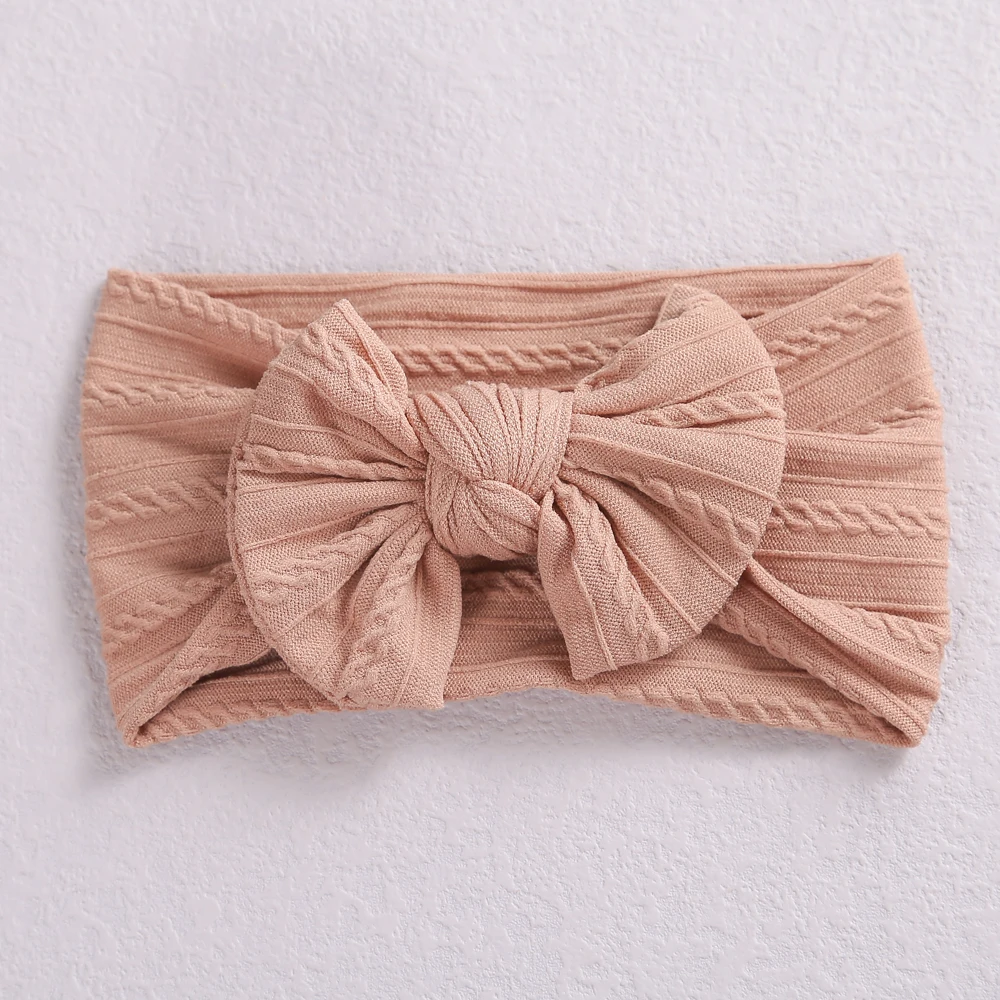 1 шт.лот вязаные повязки на голову с кабелем, мягкая широкая нейлоновая повязка на голову с тюрбаном, милая повязка на голову с бантом для новорожденных, аксессуары для волос для маленьких девочек