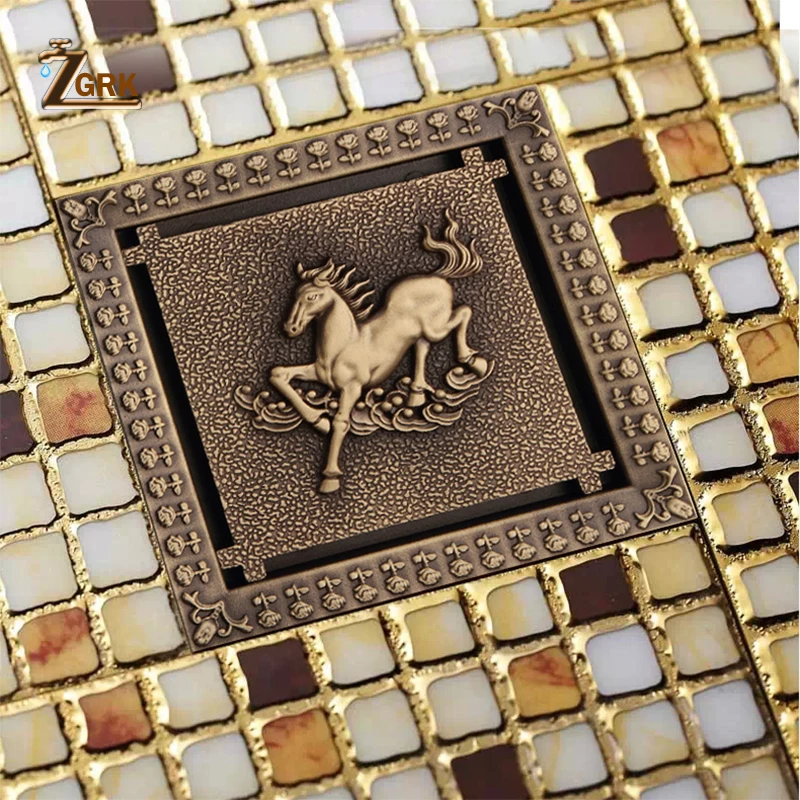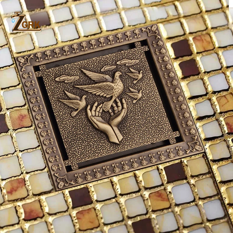 Сливной фильтр для душа ZGRK 12x12 см, античное твердое Латунное покрытие для пола, фильтр, аксессуары для ванной комнаты, художественный резной квадратный слив