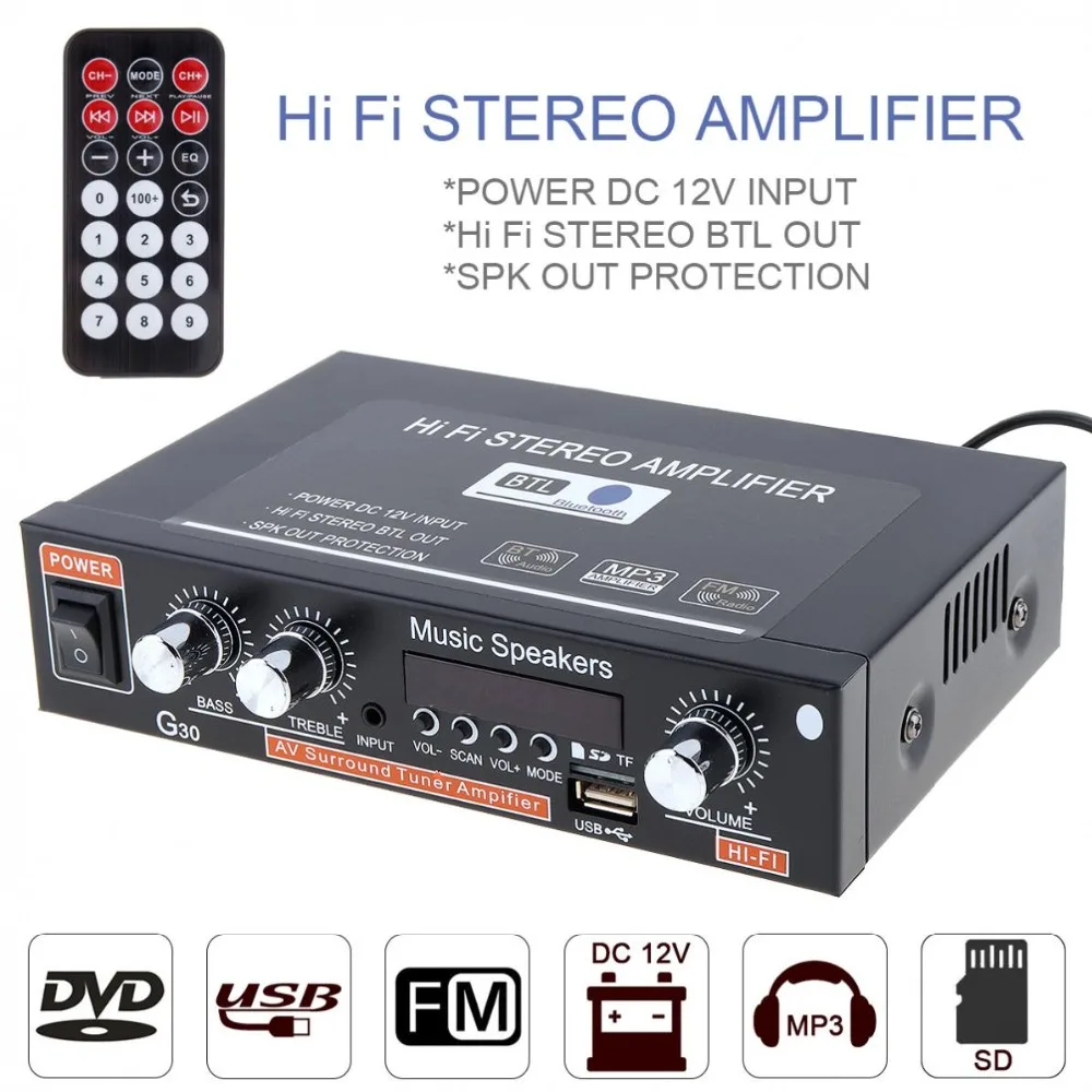 Прочный G30 HIFI Bluetooth-совместимый автомобильный усилитель мощности аудио FM-радио плеер Поддержка SDUSBDVDMP3 с пультом дистанционного управления