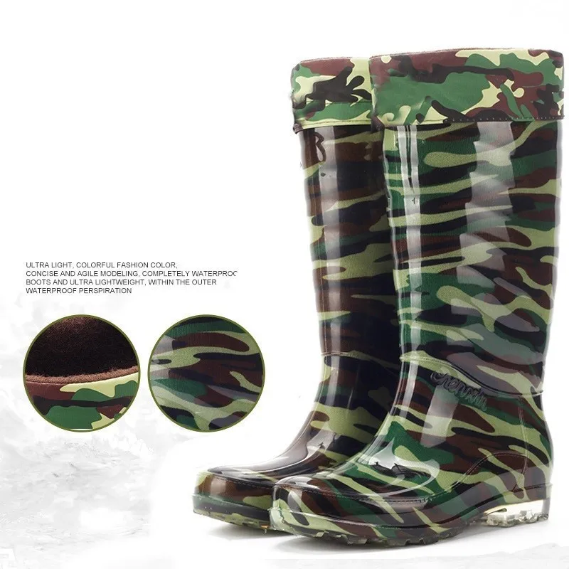 Водонепроницаемые мужские резиновые сапоги, камуфляжные теплые сапоги до колена, уличные Нескользящие высокие ботинки из ПВХ для осени и зимы icon star icon star icon star icon star icon star