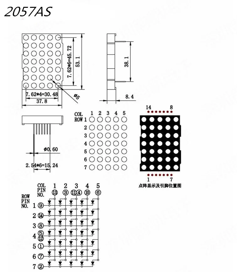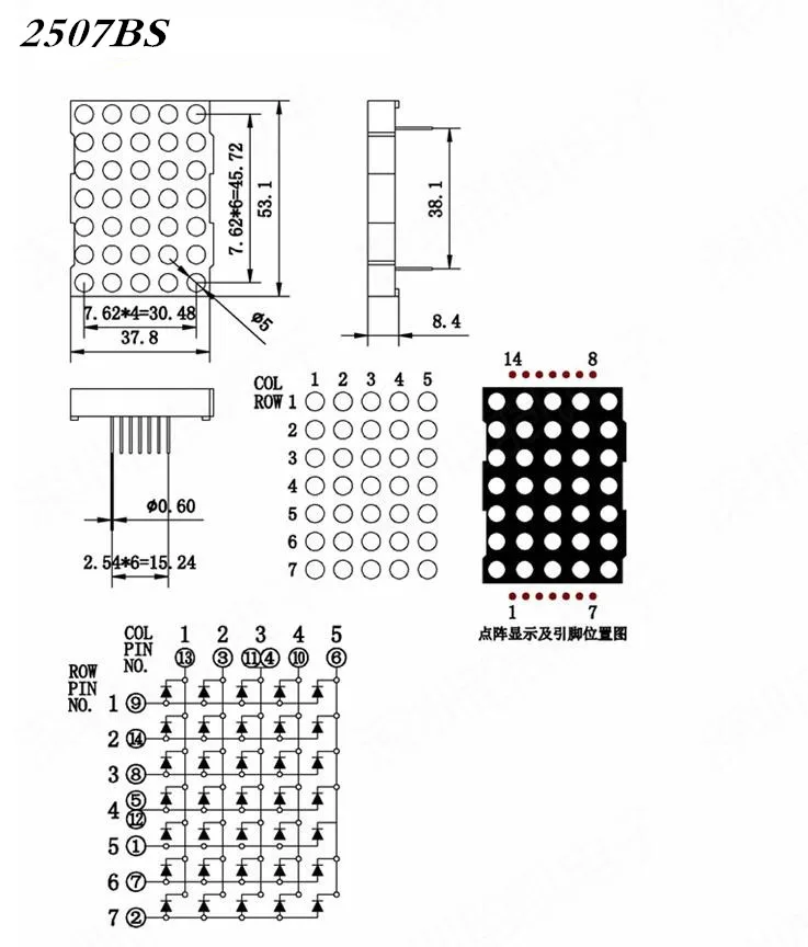 10 шт. x 5 мм 5*7 красная круглая светодиодная матричная цифровая трубка 5x7 общий катоданод светодиодный дисплей модуль